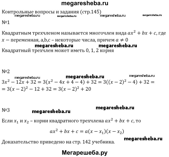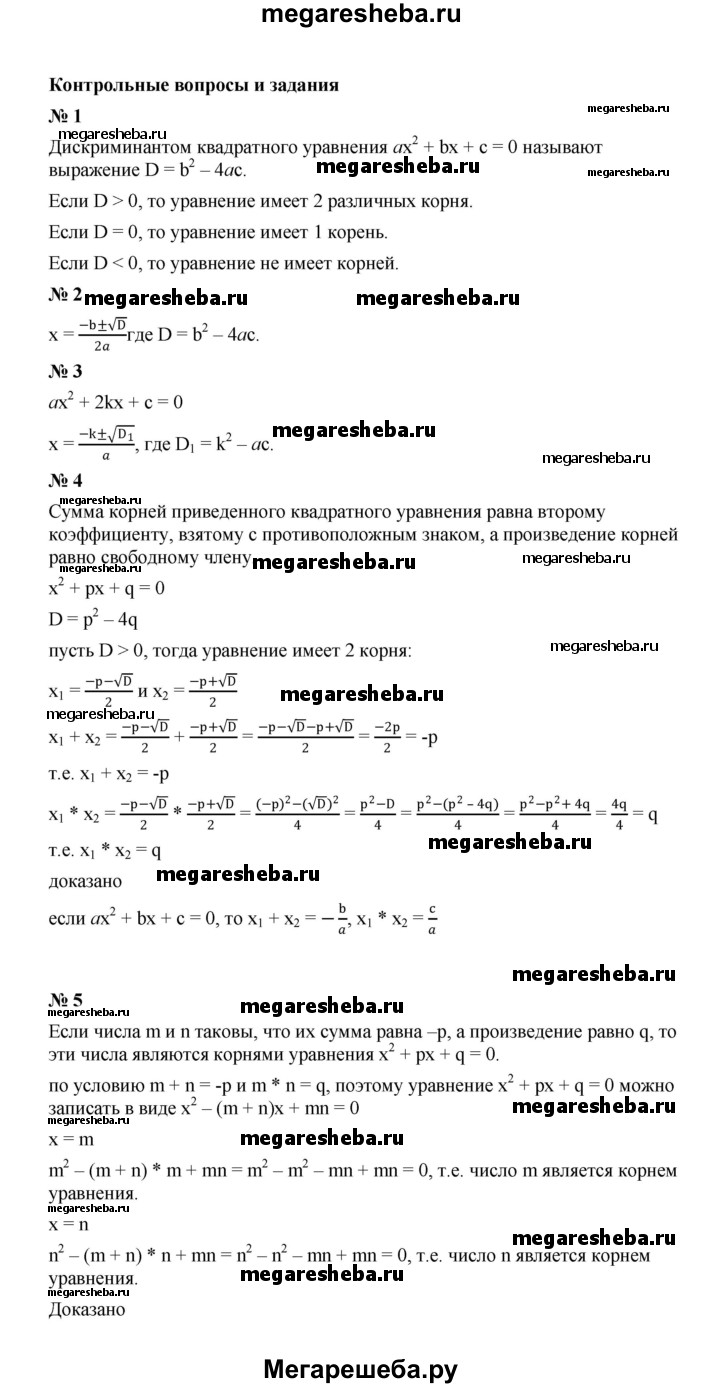ГДЗ по алгебре 8 класс Макарычев контрольные вопросы и задания - §8