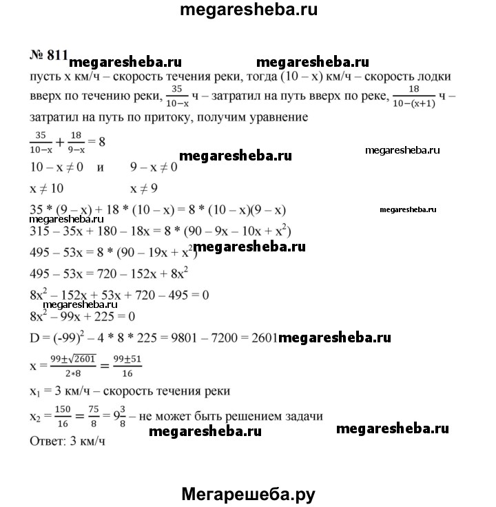 Подробный решебник (ГДЗ) по Алгебре за 8 (восьмой) класс - готовый ответ номер - 811. Авторы учебника: Макарычев, Миндюк, Нешков, Суворова. Издательство: Просвещение 2015-2025.