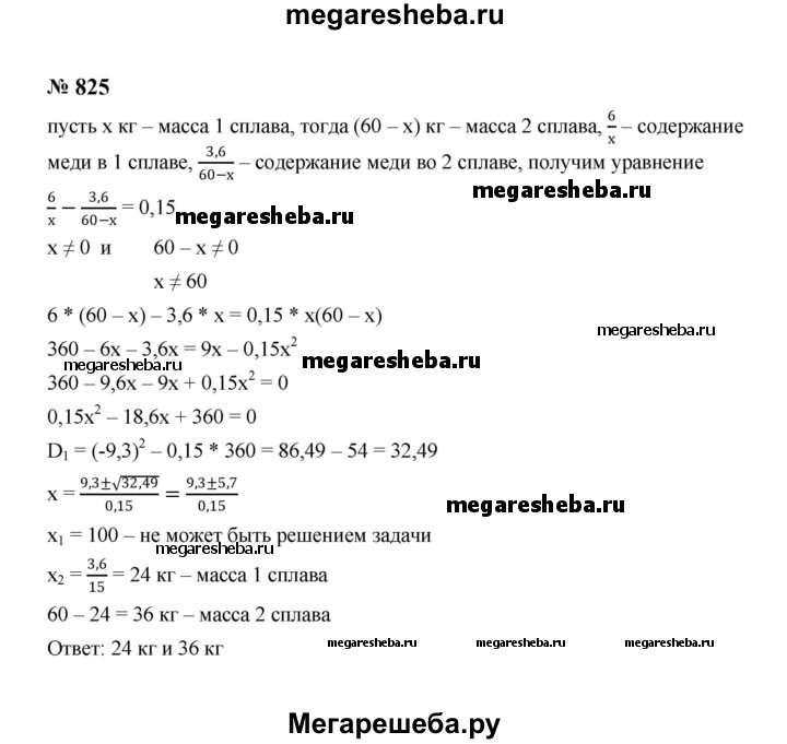 Подробный решебник (ГДЗ) по Алгебре за 8 (восьмой) класс - готовый ответ номер - 825. Авторы учебника: Макарычев, Миндюк, Нешков, Суворова. Издательство: Просвещение 2015-2025.