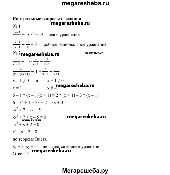 ГДЗ по алгебре 8 класс Макарычев контрольные вопросы и задания - §9