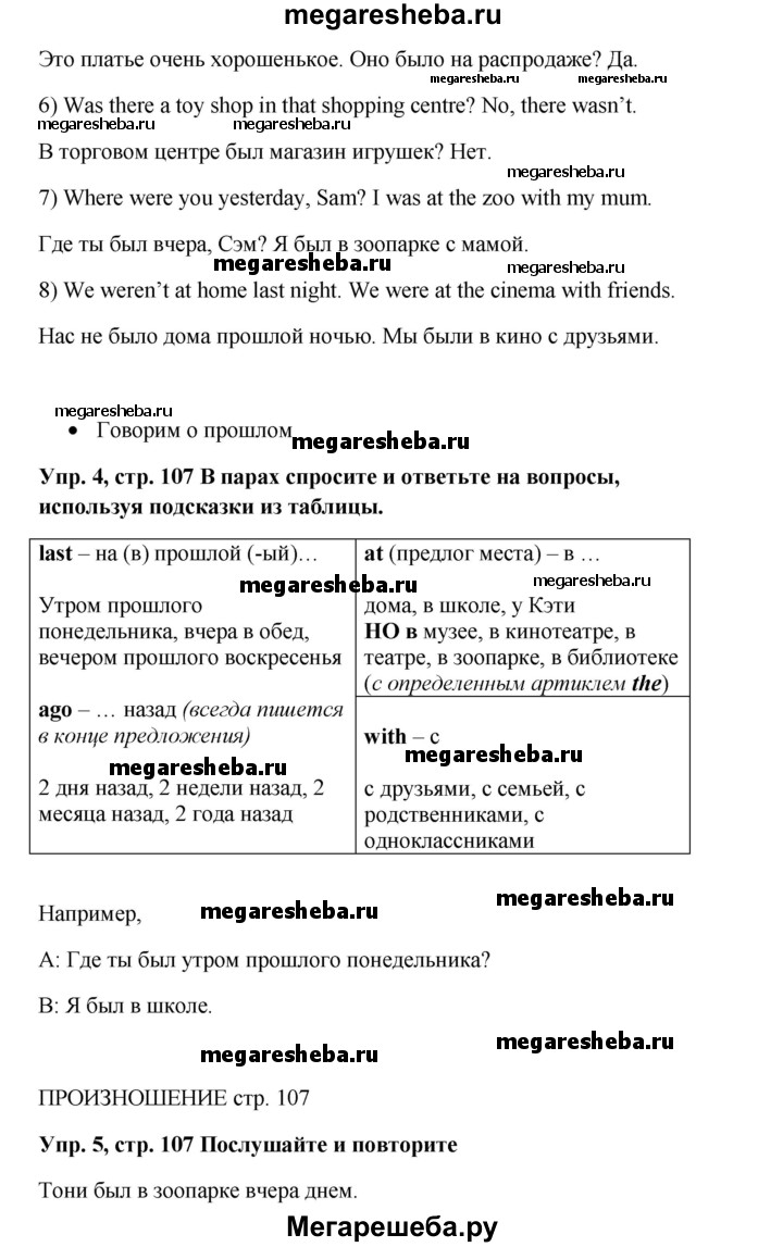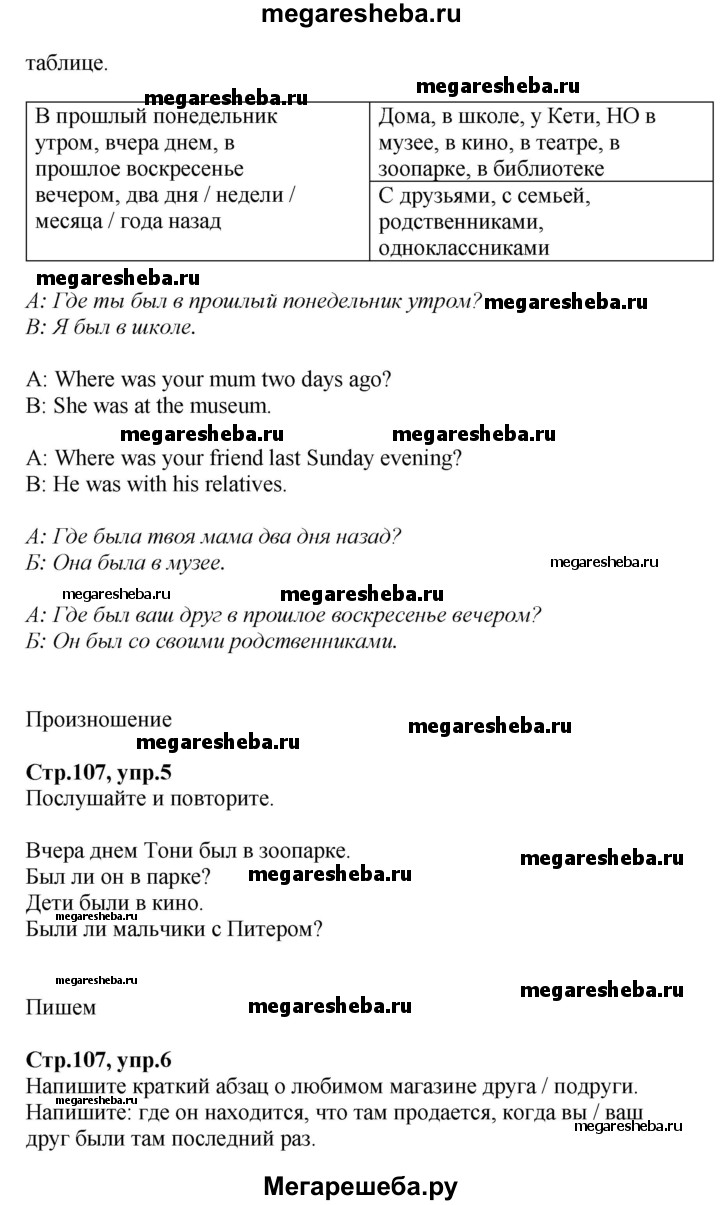 ГДЗ по английскому языку 5 класс Ваулина Spotlight, student's book страница - 107