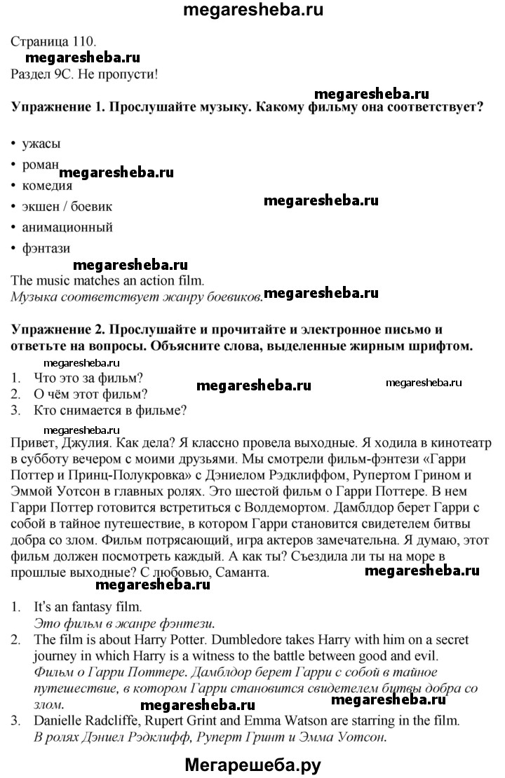 ГДЗ по английскому языку 5 класс Ваулина Spotlight, student's book страница - 110