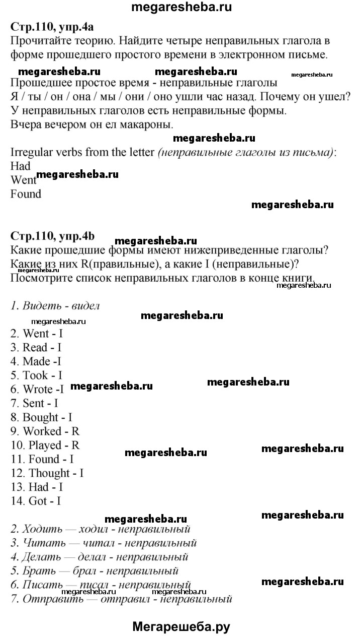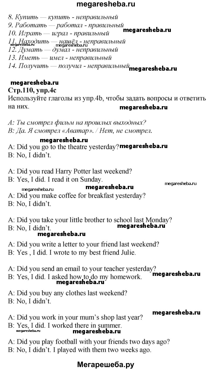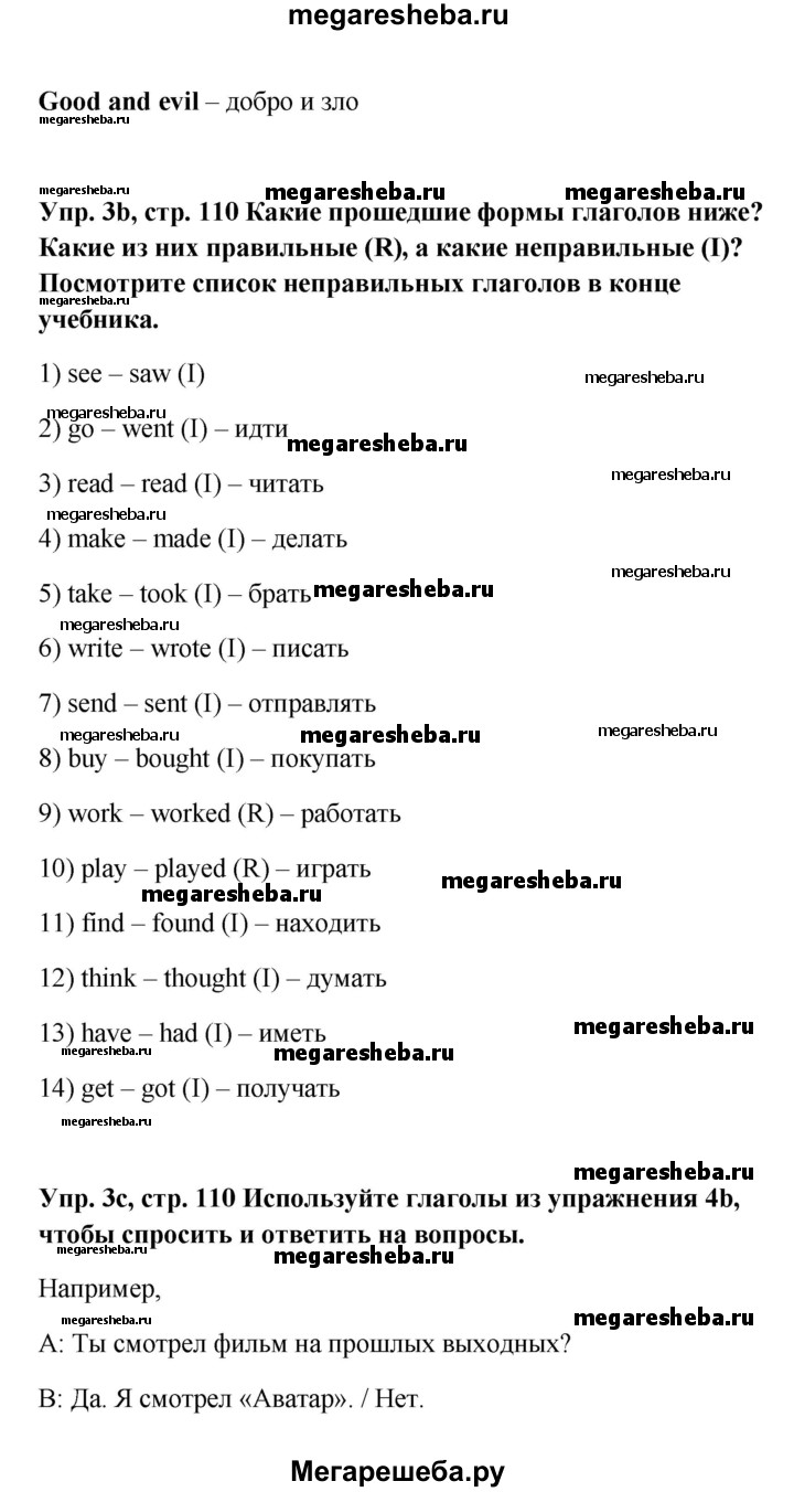 Подробный решебник (ГДЗ) по Английскому языку за 5 (пятый) класс Spotlight, student's book - готовый ответ страница - 110. Авторы учебника: Ваулина, Дули, Подоляко, Эванс. Издательство: Просвещение 2015-2025.