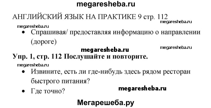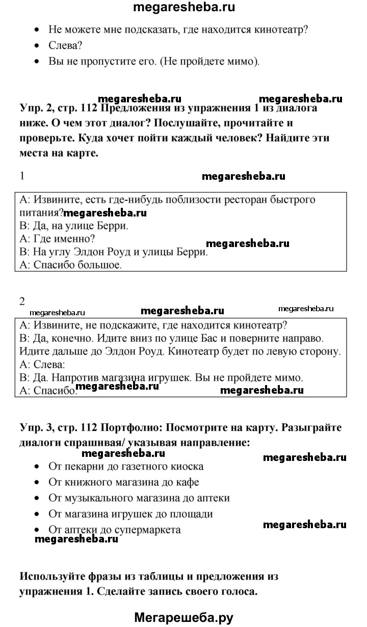Подробный решебник (ГДЗ) по Английскому языку за 5 (пятый) класс Spotlight, student's book - готовый ответ страница - 112. Авторы учебника: Ваулина, Дули, Подоляко, Эванс. Издательство: Просвещение 2015-2025.