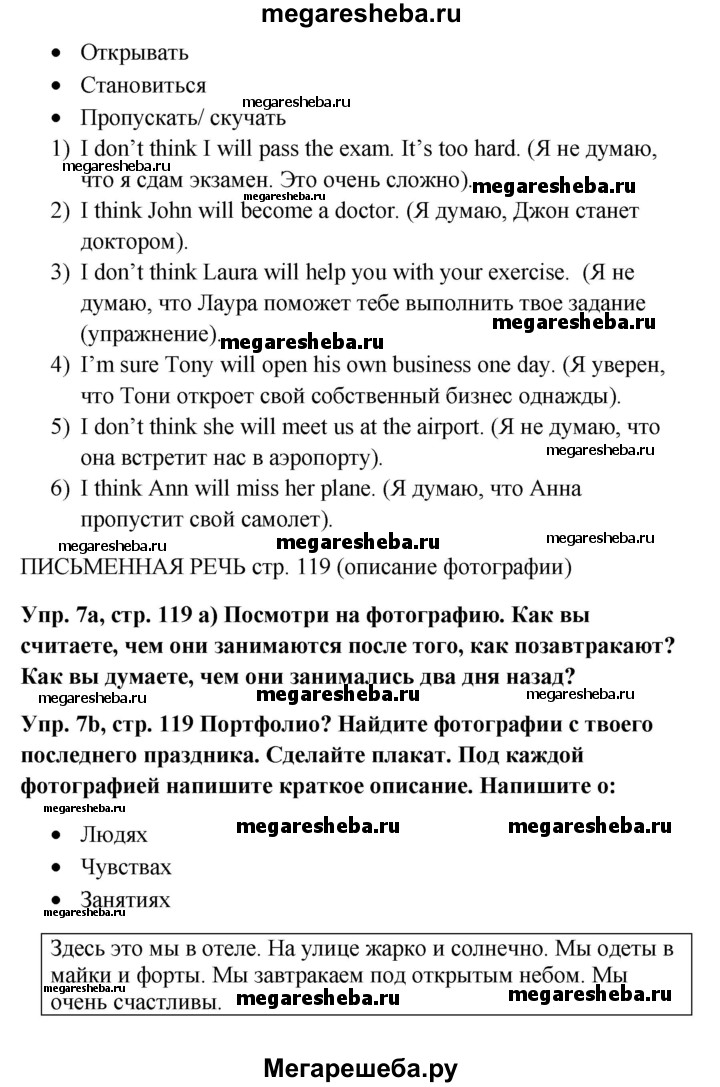 Подробный решебник (ГДЗ) по Английскому языку за 5 (пятый) класс Spotlight, student's book - готовый ответ страница - 119. Авторы учебника: Ваулина, Дули, Подоляко, Эванс. Издательство: Просвещение 2015-2025.