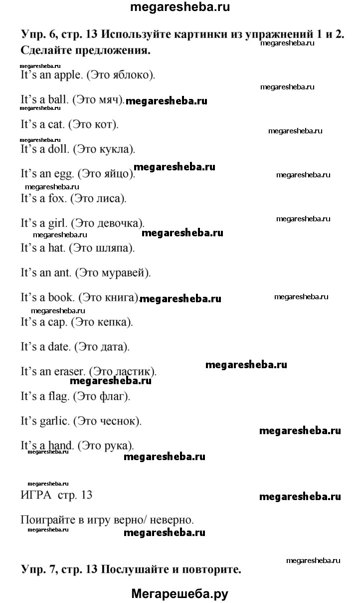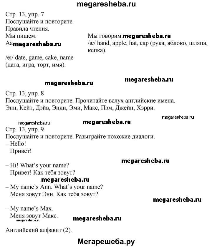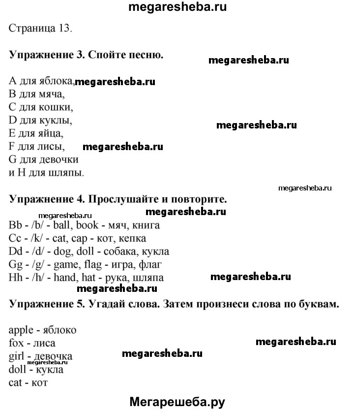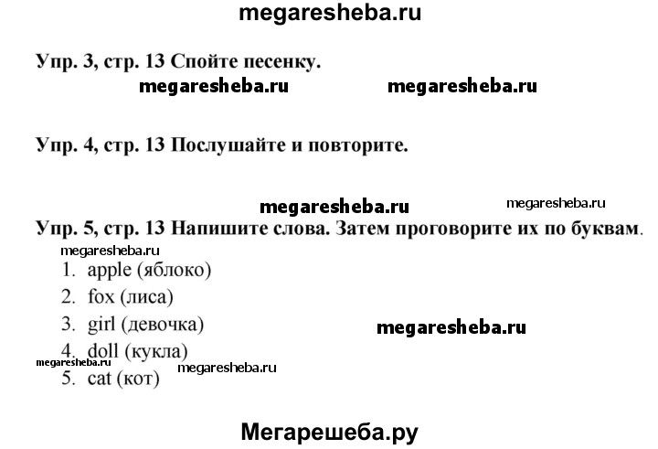Подробный решебник (ГДЗ) по Английскому языку за 5 (пятый) класс Spotlight, student's book - готовый ответ страница - 13. Авторы учебника: Ваулина, Дули, Подоляко, Эванс. Издательство: Просвещение 2015-2025.