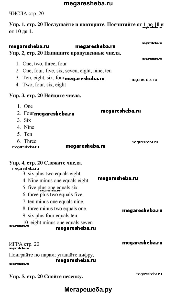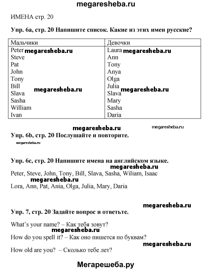 Подробный решебник (ГДЗ) по Английскому языку за 5 (пятый) класс Spotlight, student's book - готовый ответ страница - 20. Авторы учебника: Ваулина, Дули, Подоляко, Эванс. Издательство: Просвещение 2015-2025.