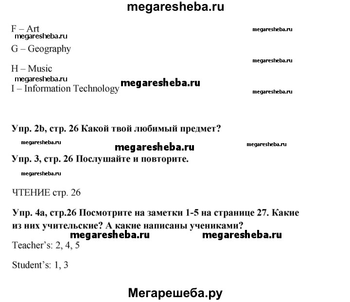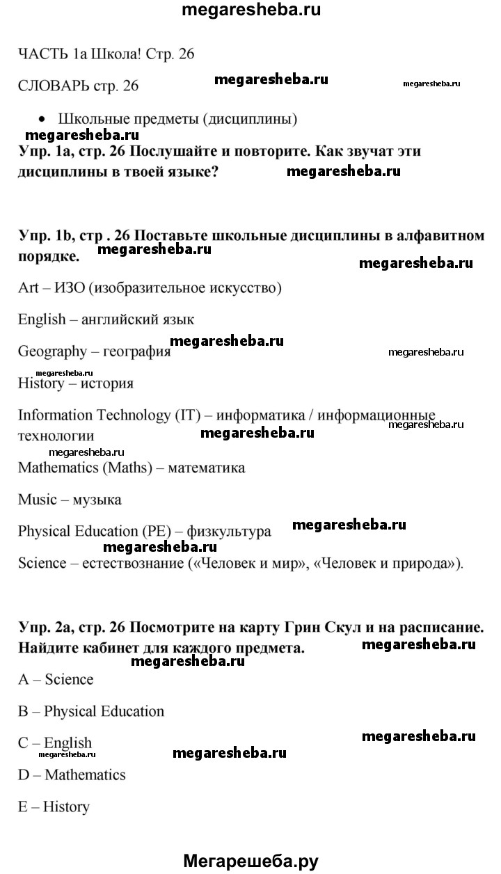 Подробный решебник (ГДЗ) по Английскому языку за 5 (пятый) класс Spotlight, student's book - готовый ответ страница - 26. Авторы учебника: Ваулина, Дули, Подоляко, Эванс. Издательство: Просвещение 2015-2025.