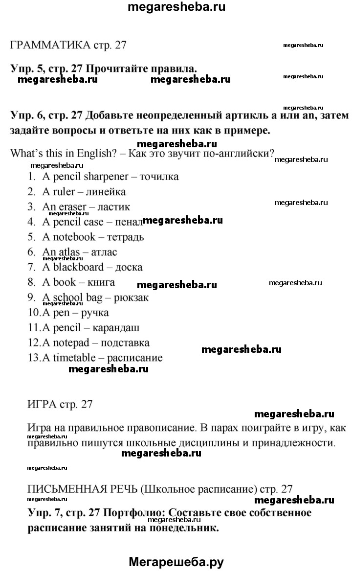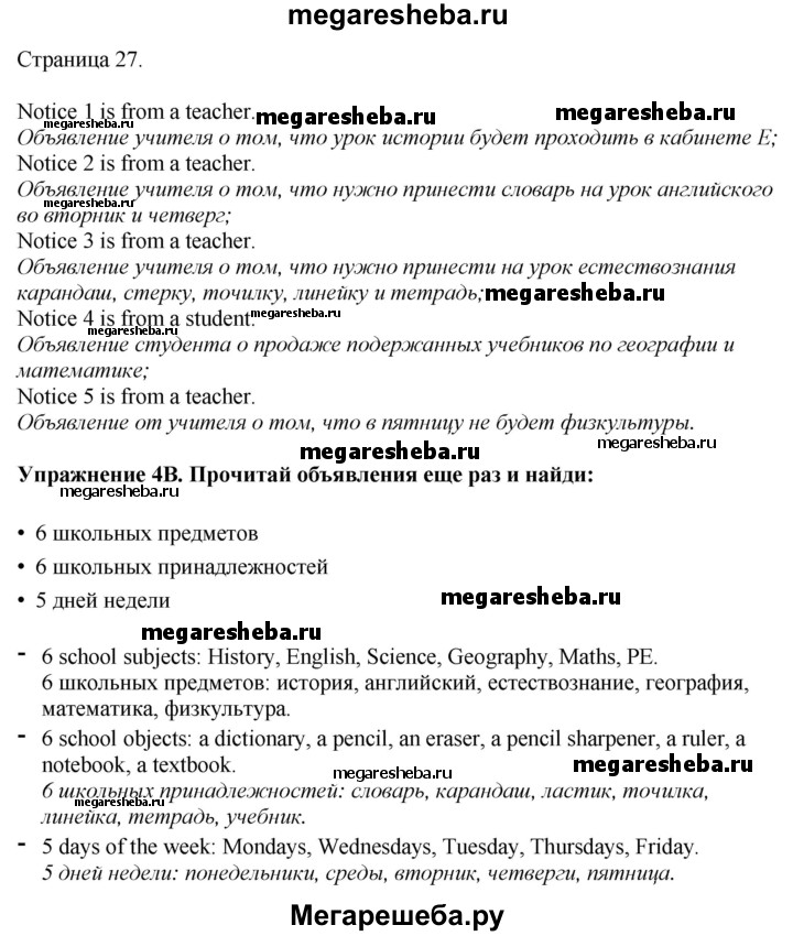 ГДЗ по английскому языку 5 класс Ваулина Spotlight, student's book страница - 27