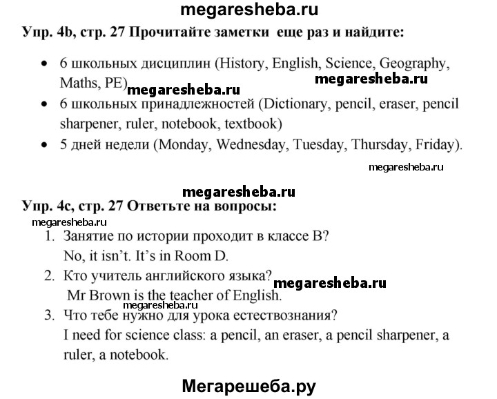 Подробный решебник (ГДЗ) по Английскому языку за 5 (пятый) класс Spotlight, student's book - готовый ответ страница - 27. Авторы учебника: Ваулина, Дули, Подоляко, Эванс. Издательство: Просвещение 2015-2025.