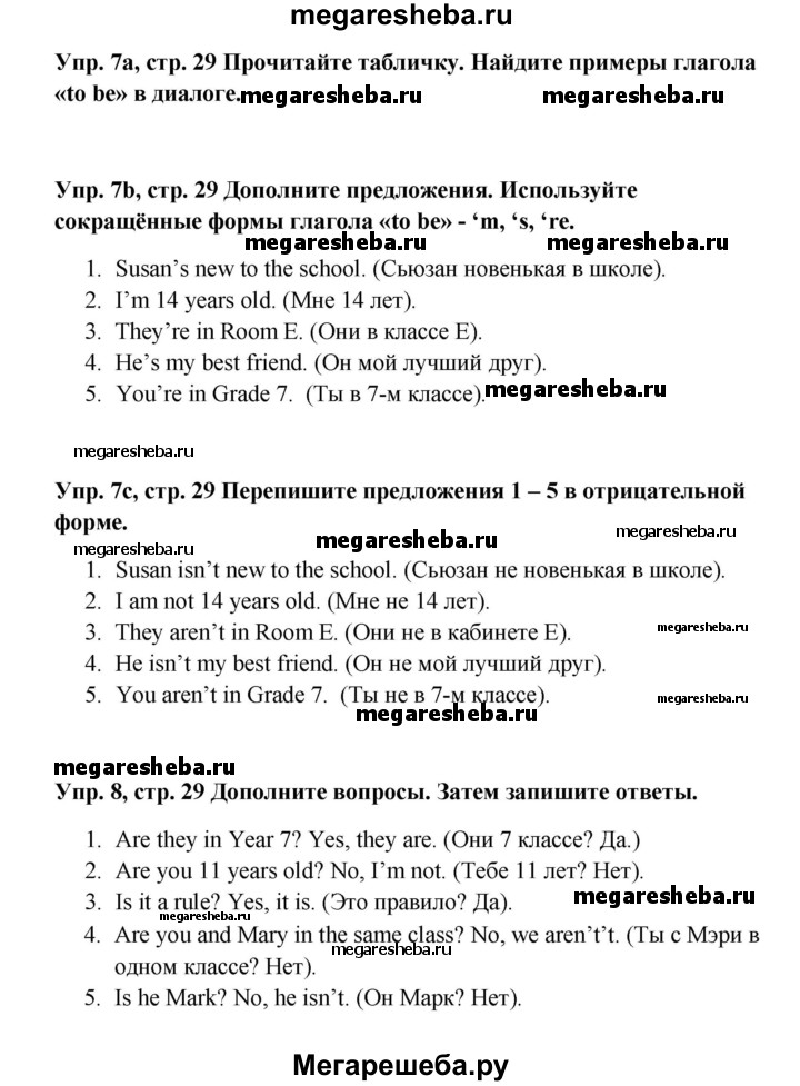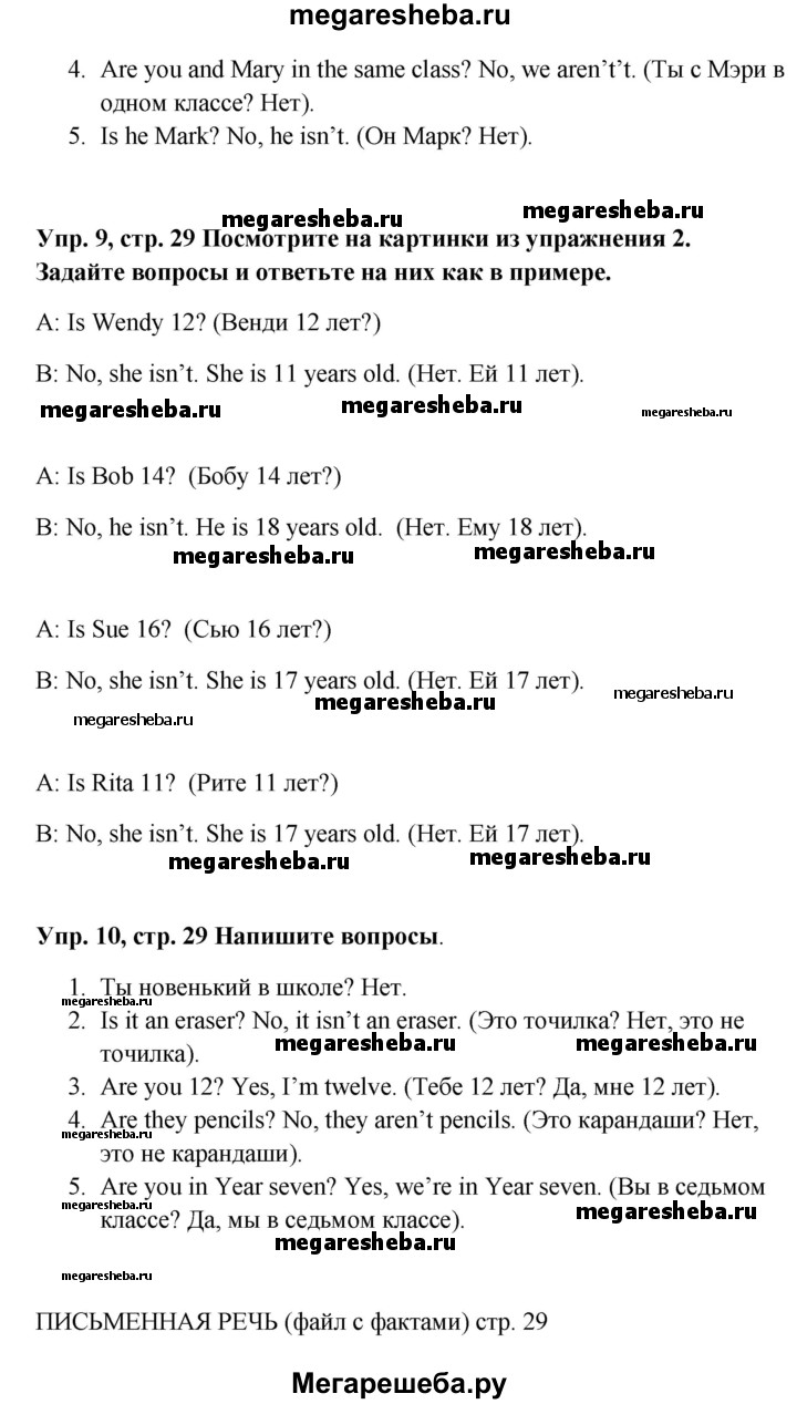 Подробный решебник (ГДЗ) по Английскому языку за 5 (пятый) класс Spotlight, student's book - готовый ответ страница - 29. Авторы учебника: Ваулина, Дули, Подоляко, Эванс. Издательство: Просвещение 2015-2025.