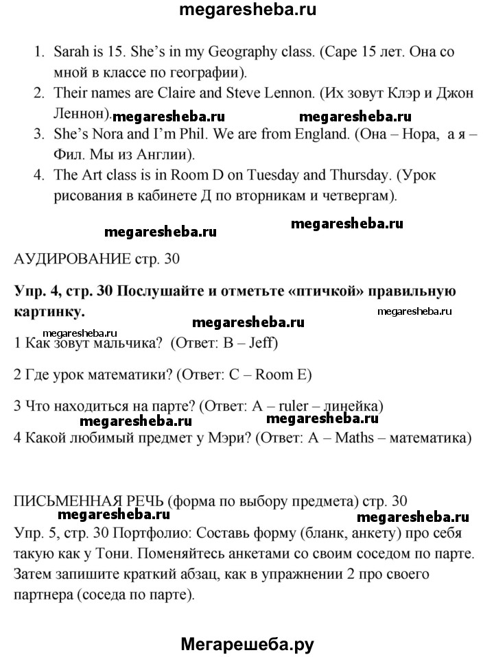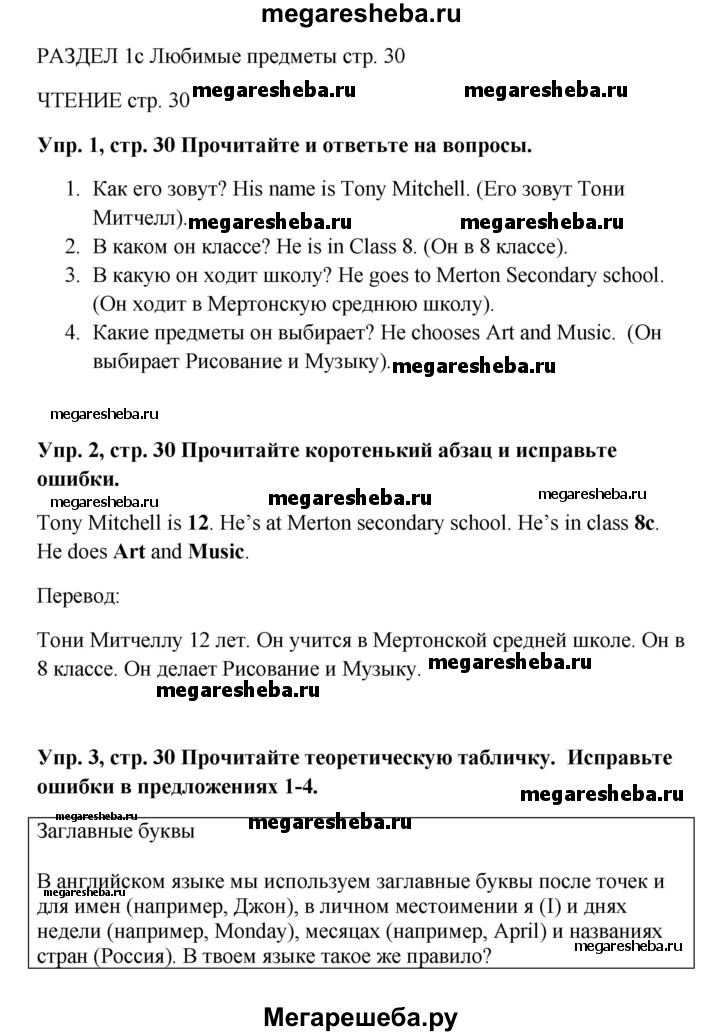 Подробный решебник (ГДЗ) по Английскому языку за 5 (пятый) класс Spotlight, student's book - готовый ответ страница - 30. Авторы учебника: Ваулина, Дули, Подоляко, Эванс. Издательство: Просвещение 2015-2025.