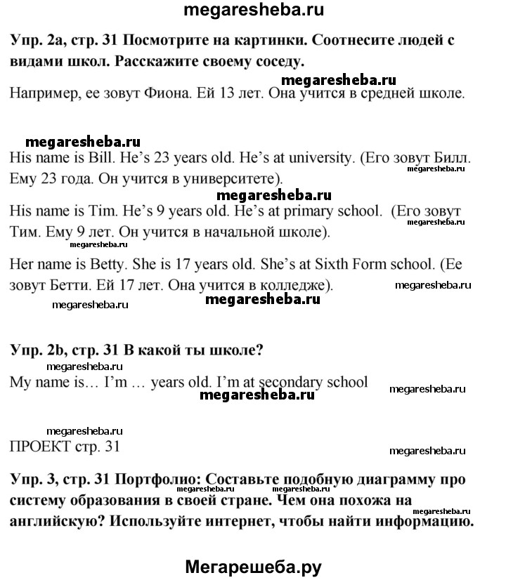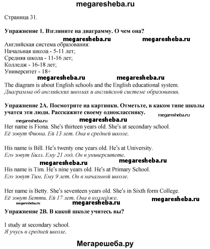 Подробный решебник (ГДЗ) по Английскому языку за 5 (пятый) класс Spotlight, student's book - готовый ответ страница - 31. Авторы учебника: Ваулина, Дули, Подоляко, Эванс. Издательство: Просвещение 2015-2025.