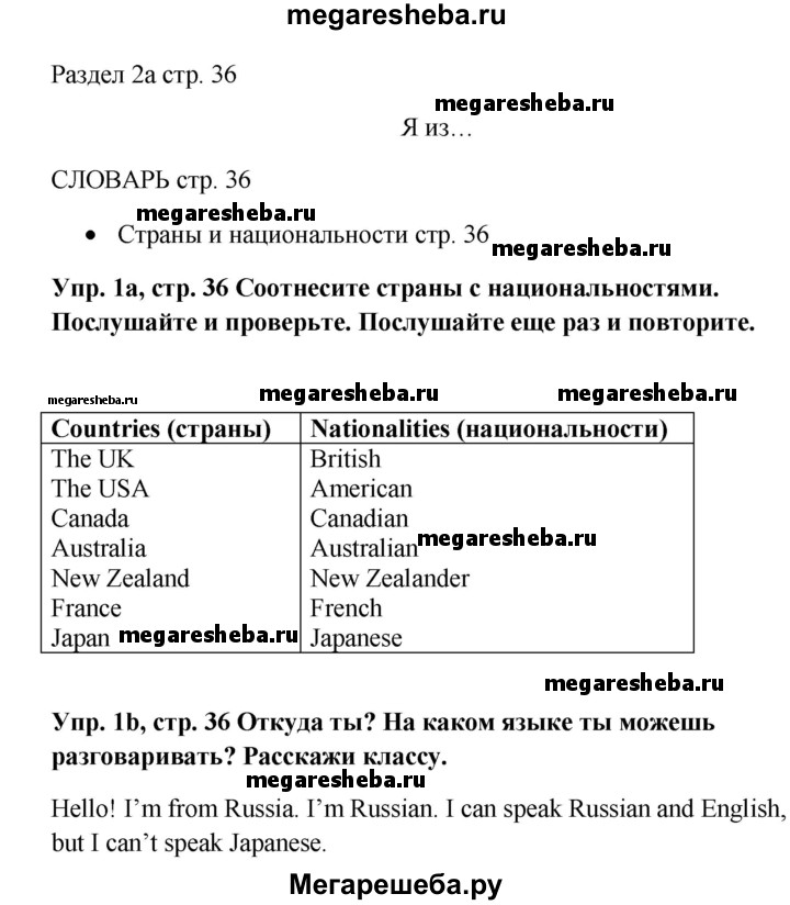 ГДЗ по английскому языку 5 класс Ваулина Spotlight, student's book страница - 36