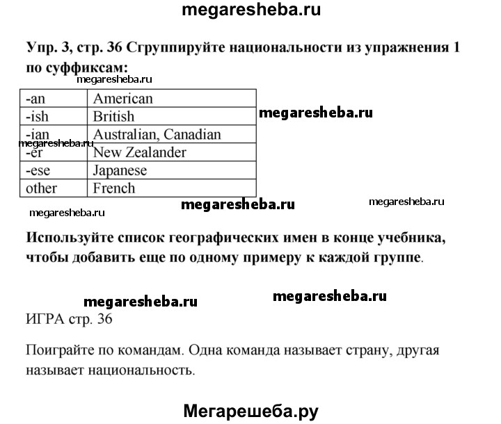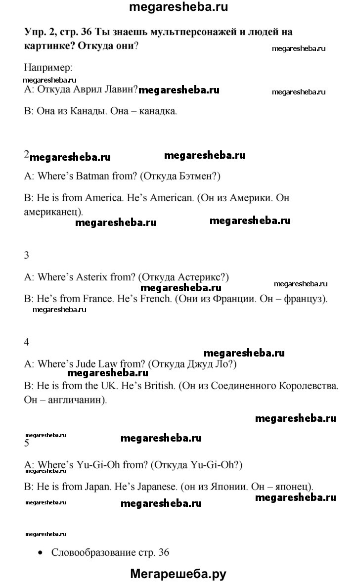 Подробный решебник (ГДЗ) по Английскому языку за 5 (пятый) класс Spotlight, student's book - готовый ответ страница - 36. Авторы учебника: Ваулина, Дули, Подоляко, Эванс. Издательство: Просвещение 2015-2025.