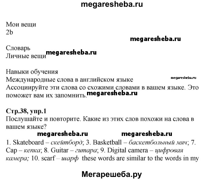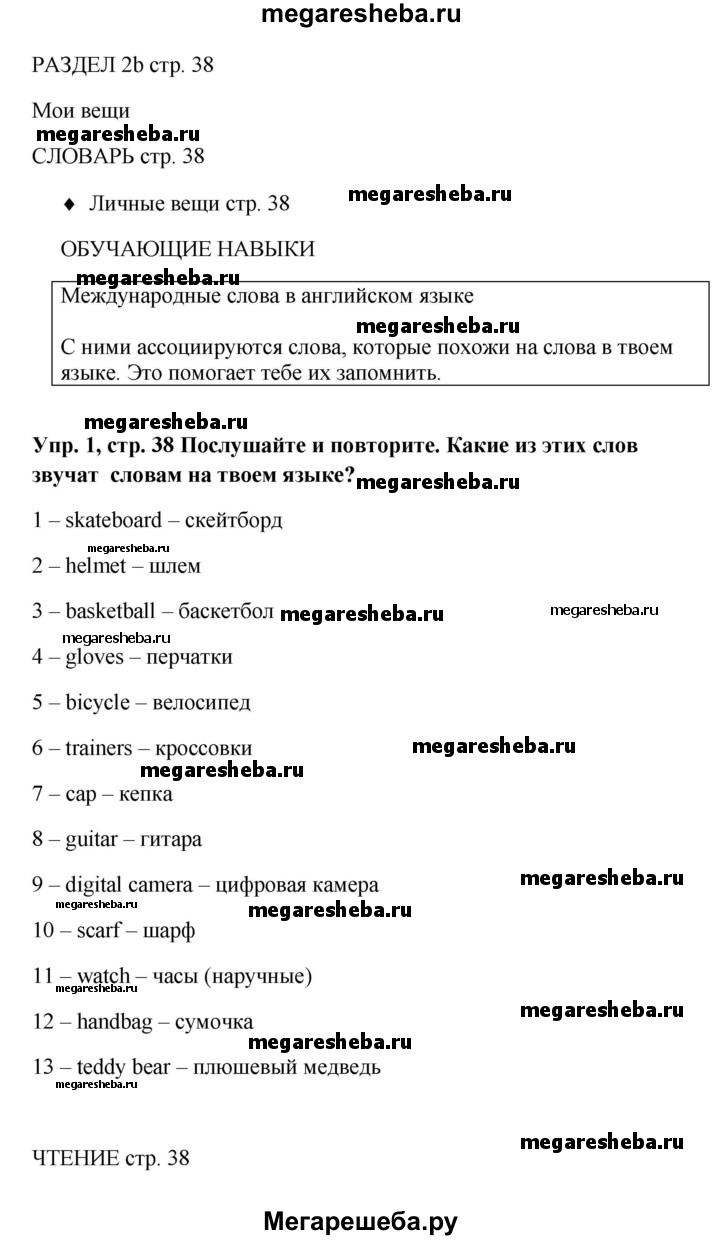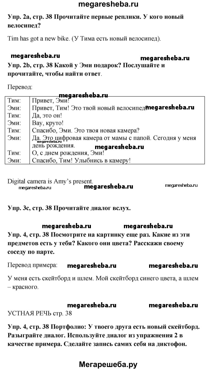 Подробный решебник (ГДЗ) по Английскому языку за 5 (пятый) класс Spotlight, student's book - готовый ответ страница - 38. Авторы учебника: Ваулина, Дули, Подоляко, Эванс. Издательство: Просвещение 2015-2025.