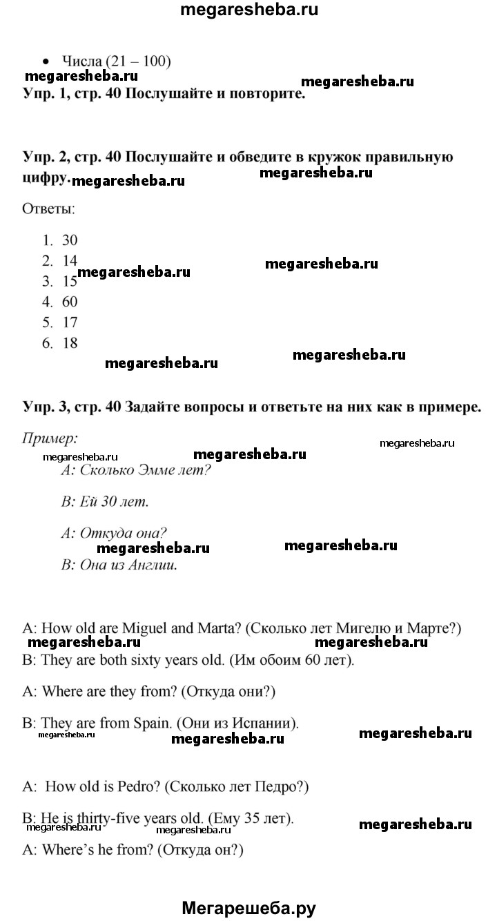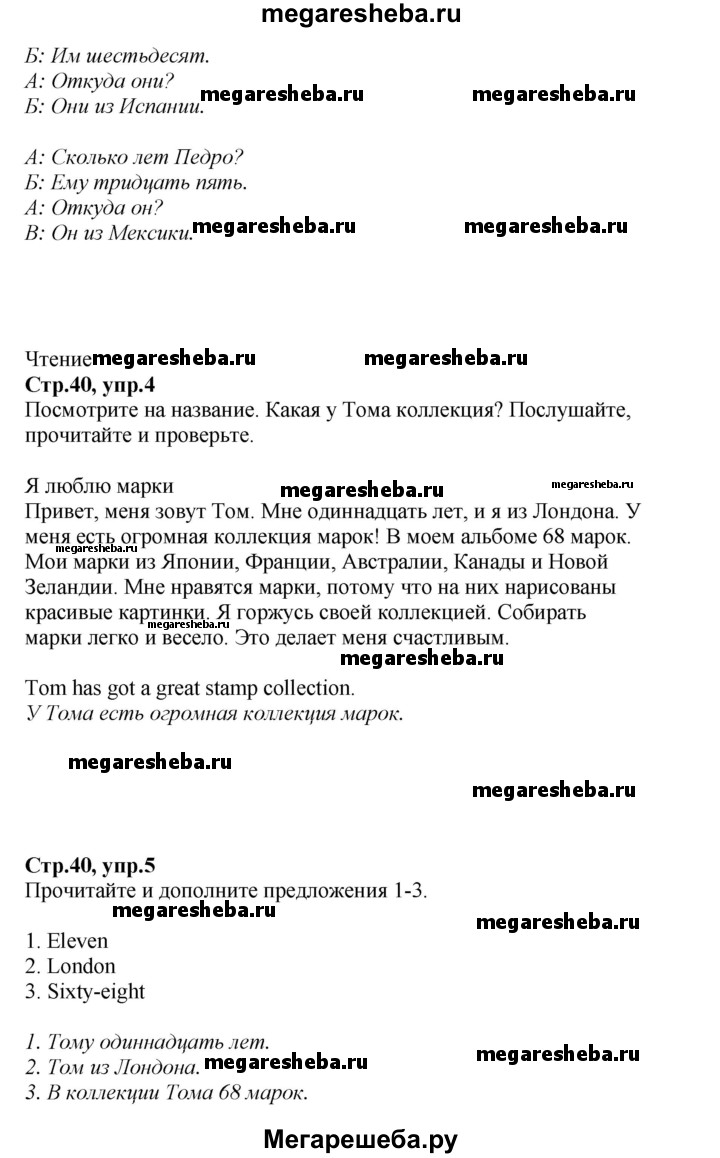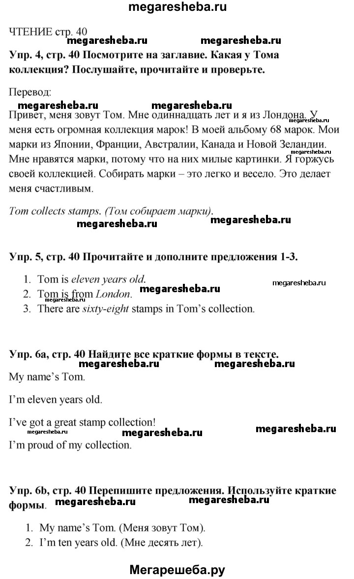 Подробный решебник (ГДЗ) по Английскому языку за 5 (пятый) класс Spotlight, student's book - готовый ответ страница - 40. Авторы учебника: Ваулина, Дули, Подоляко, Эванс. Издательство: Просвещение 2015-2025.