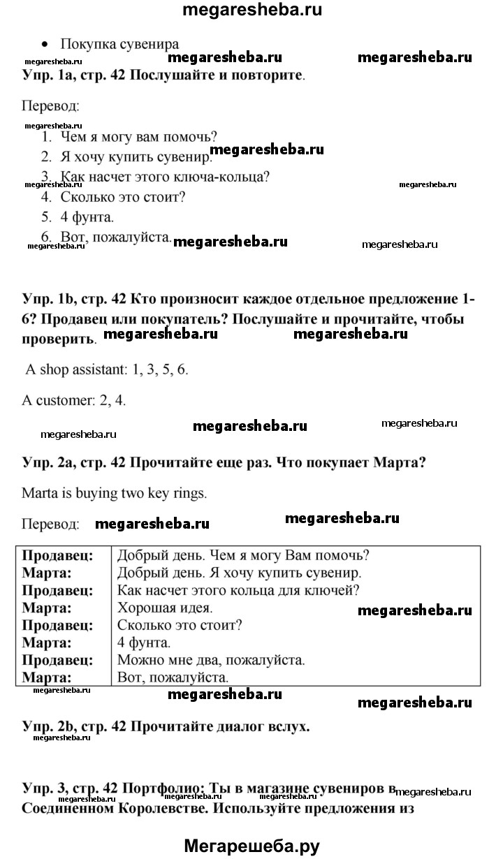 Подробный решебник (ГДЗ) по Английскому языку за 5 (пятый) класс Spotlight, student's book - готовый ответ страница - 42. Авторы учебника: Ваулина, Дули, Подоляко, Эванс. Издательство: Просвещение 2015-2025.
