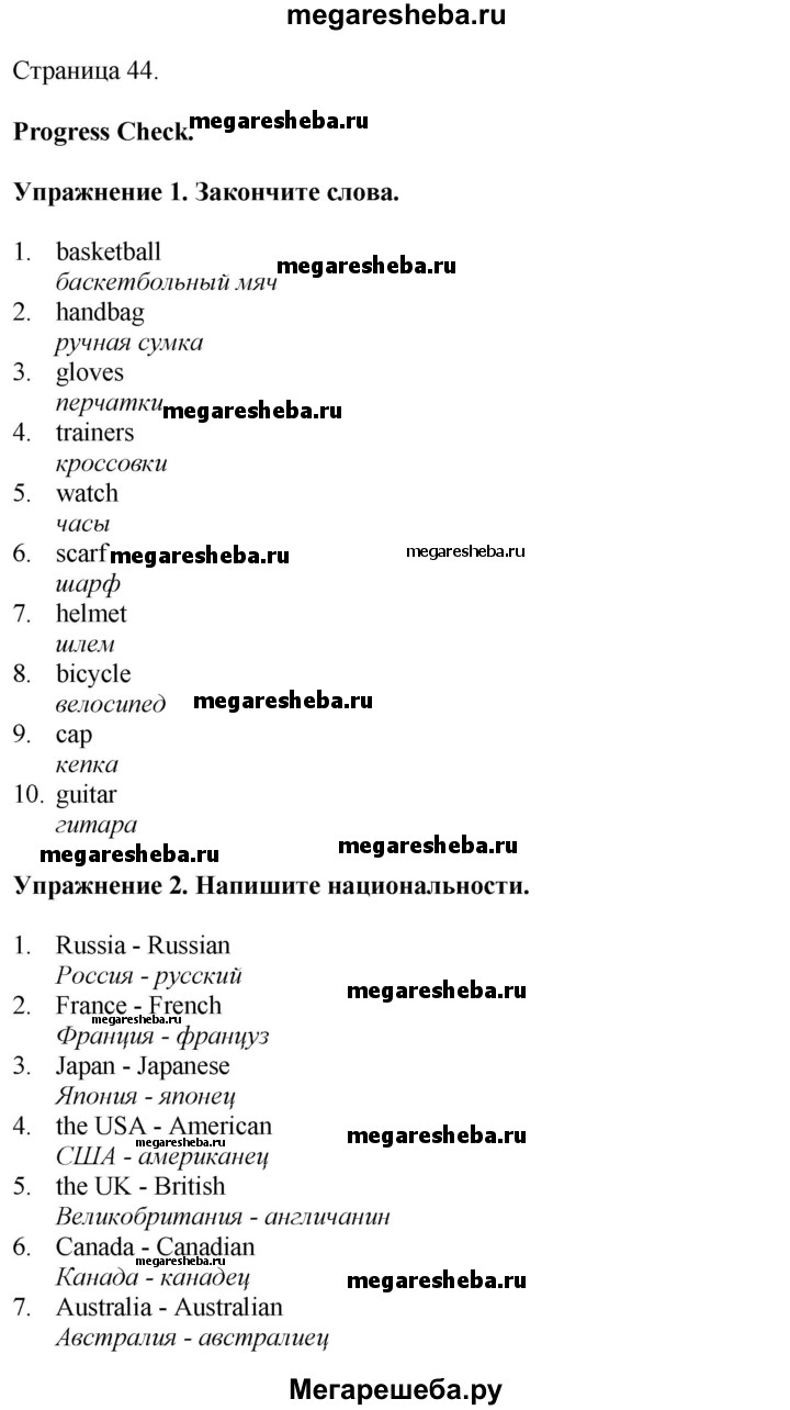 ГДЗ по английскому языку 5 класс Ваулина Spotlight, student's book страница - 44
