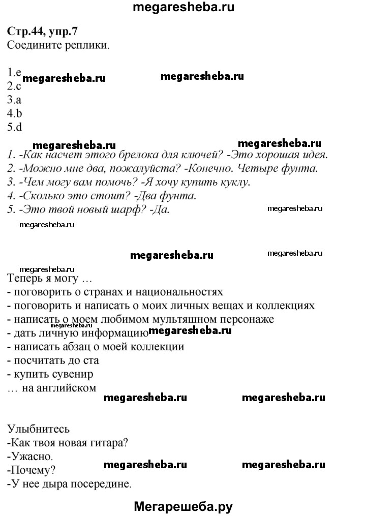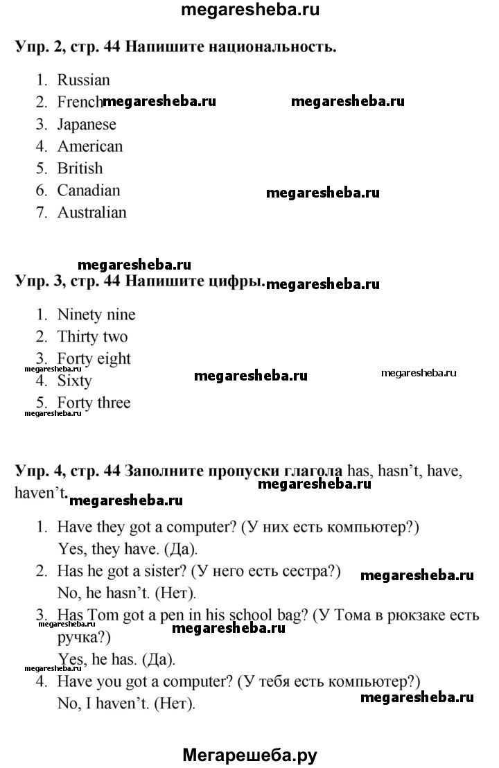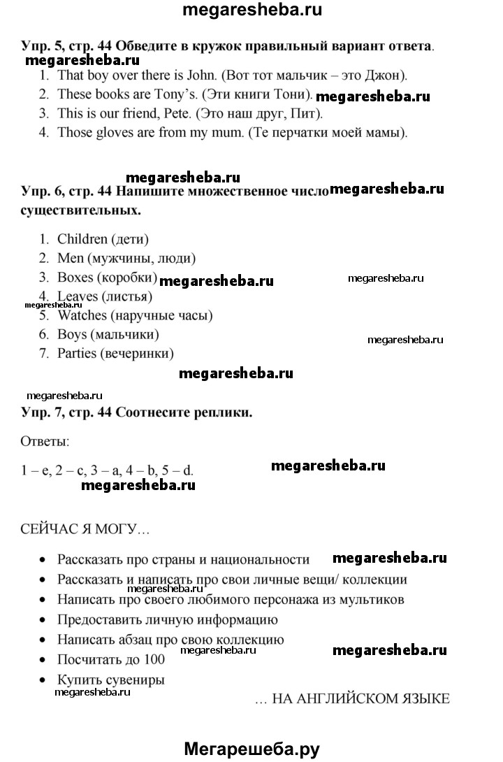 Подробный решебник (ГДЗ) по Английскому языку за 5 (пятый) класс Spotlight, student's book - готовый ответ страница - 44. Авторы учебника: Ваулина, Дули, Подоляко, Эванс. Издательство: Просвещение 2015-2025.