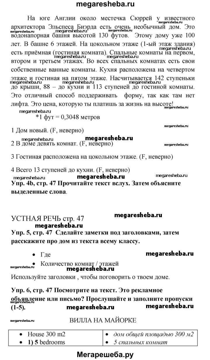 Подробный решебник (ГДЗ) по Английскому языку за 5 (пятый) класс Spotlight, student's book - готовый ответ страница - 47. Авторы учебника: Ваулина, Дули, Подоляко, Эванс. Издательство: Просвещение 2015-2025.