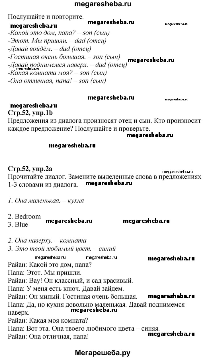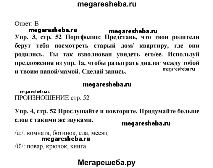 Подробный решебник (ГДЗ) по Английскому языку за 5 (пятый) класс Spotlight, student's book - готовый ответ страница - 52. Авторы учебника: Ваулина, Дули, Подоляко, Эванс. Издательство: Просвещение 2015-2025.