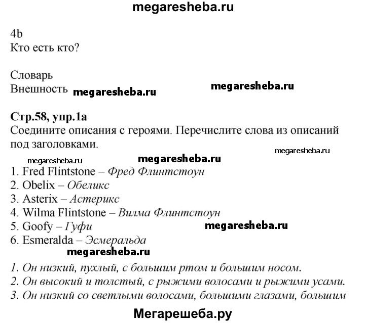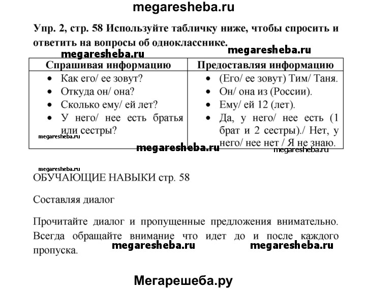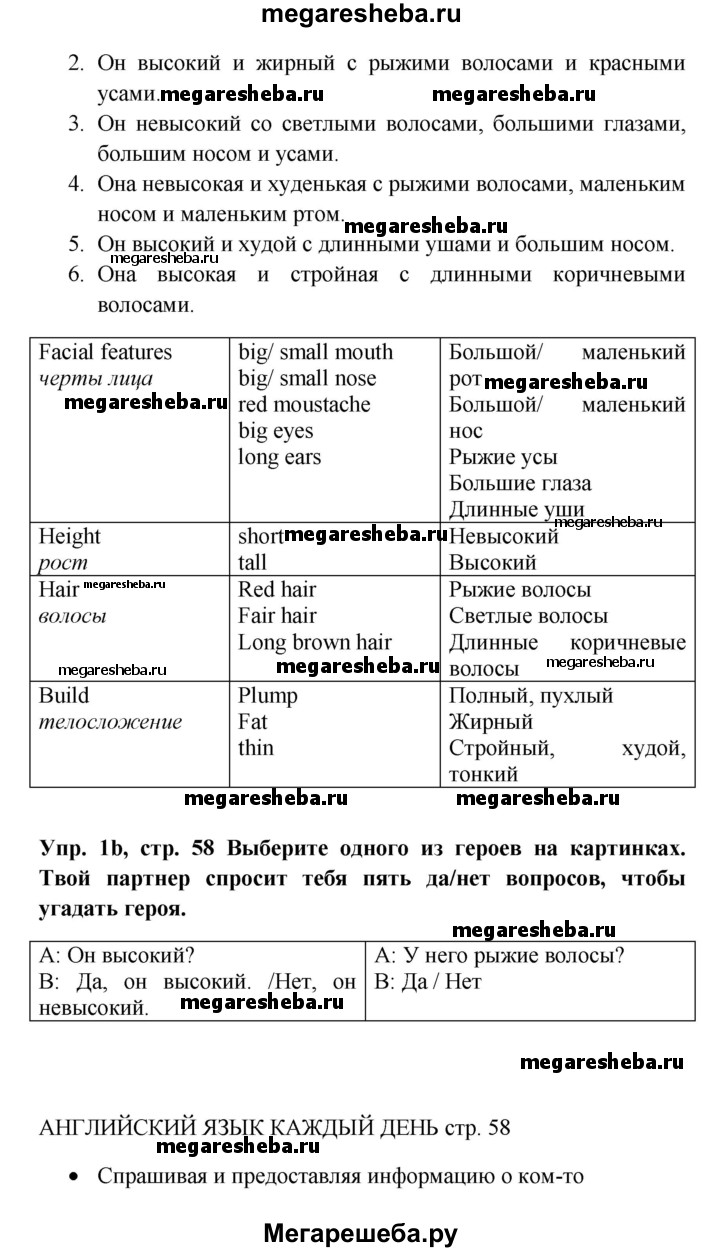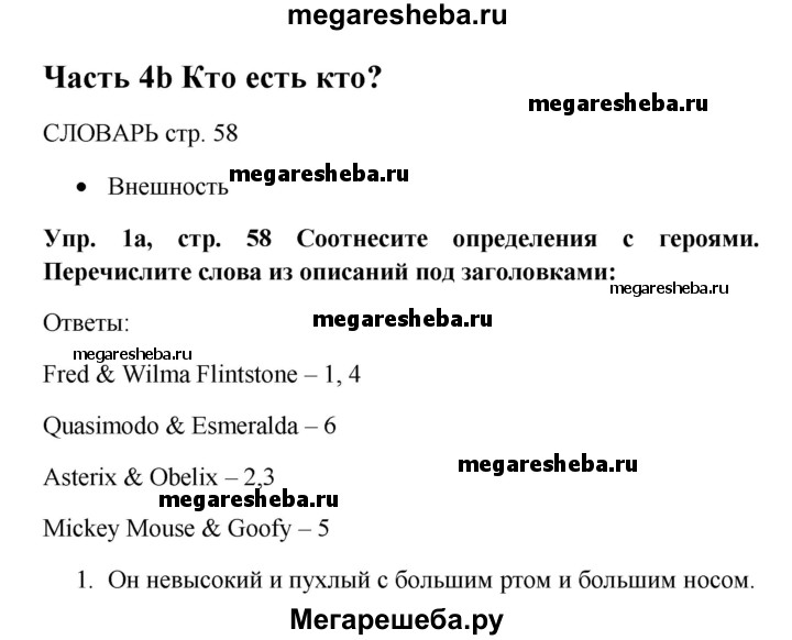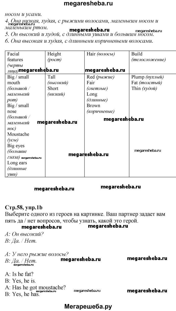 Подробный решебник (ГДЗ) по Английскому языку за 5 (пятый) класс Spotlight, student's book - готовый ответ страница - 58. Авторы учебника: Ваулина, Дули, Подоляко, Эванс. Издательство: Просвещение 2015-2025.