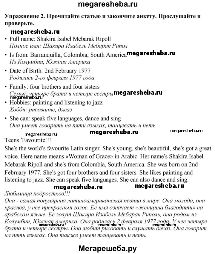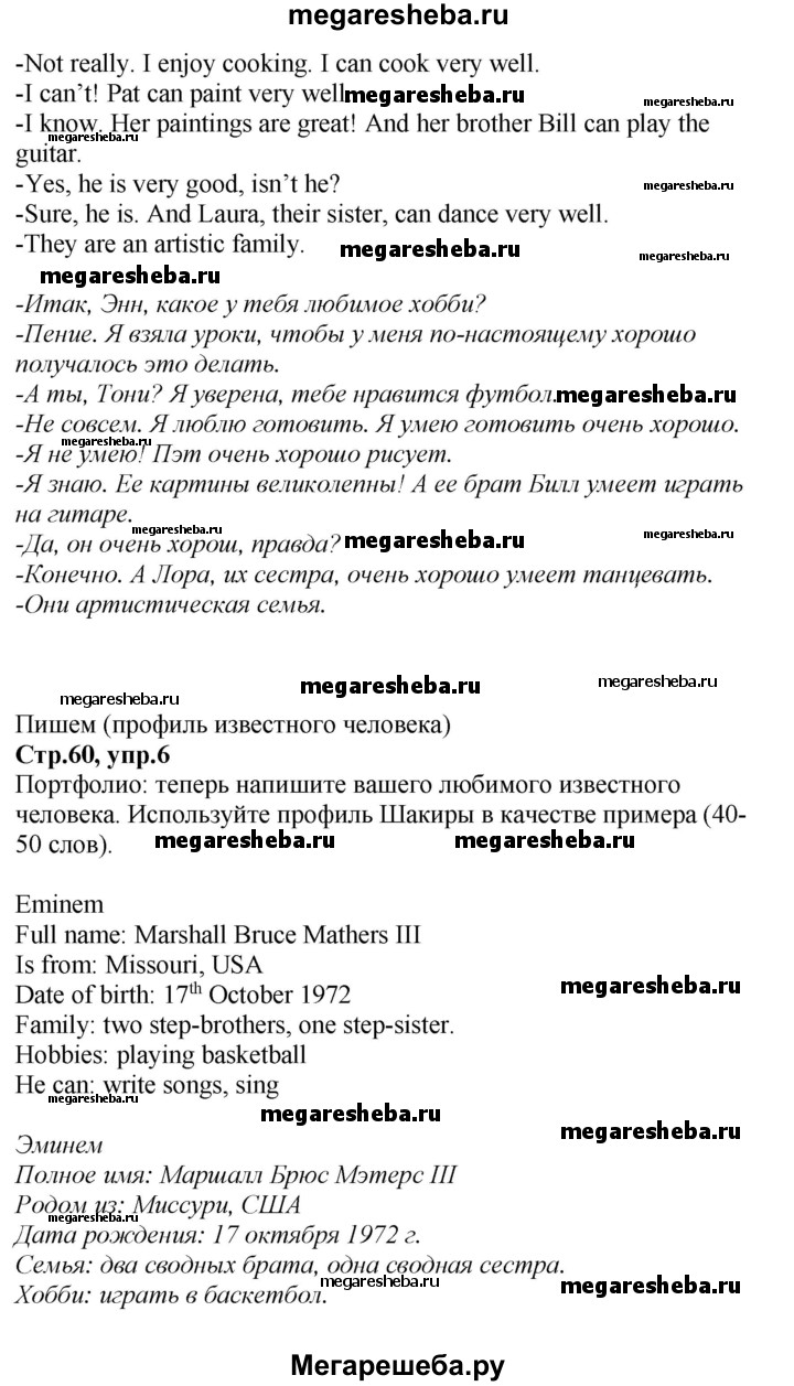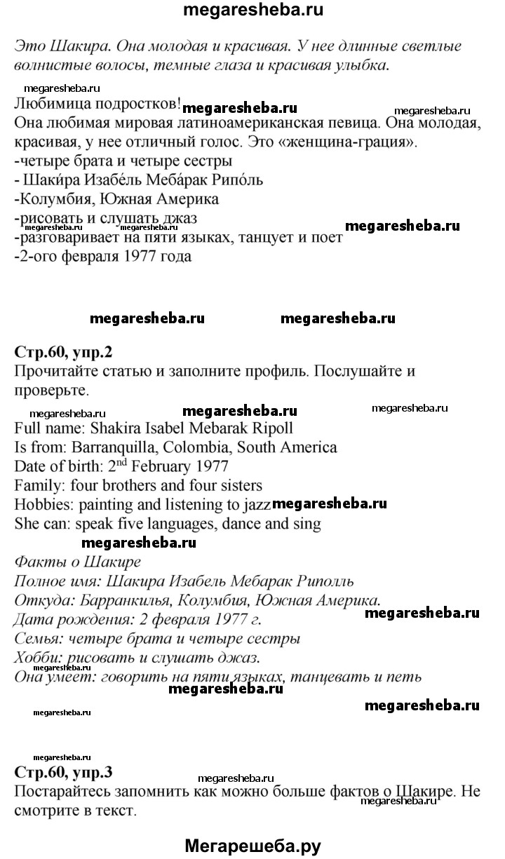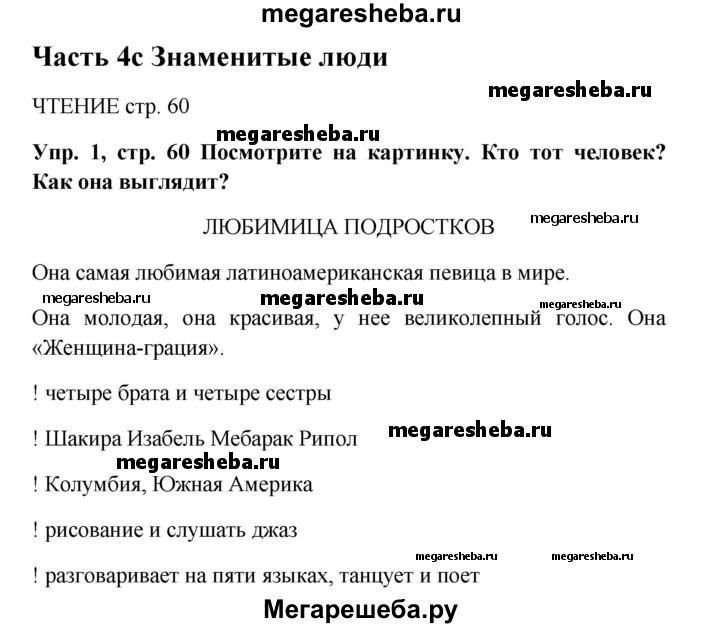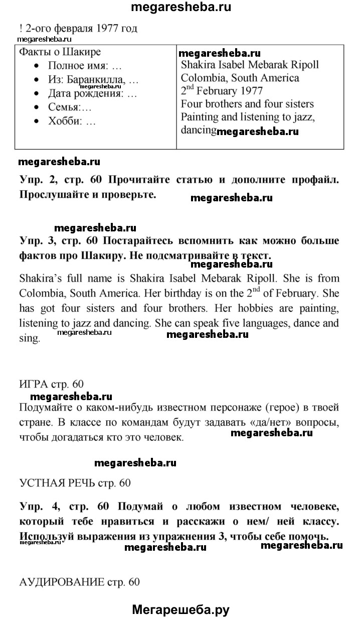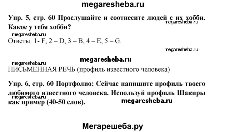 Подробный решебник (ГДЗ) по Английскому языку за 5 (пятый) класс Spotlight, student's book - готовый ответ страница - 60. Авторы учебника: Ваулина, Дули, Подоляко, Эванс. Издательство: Просвещение 2015-2025.
