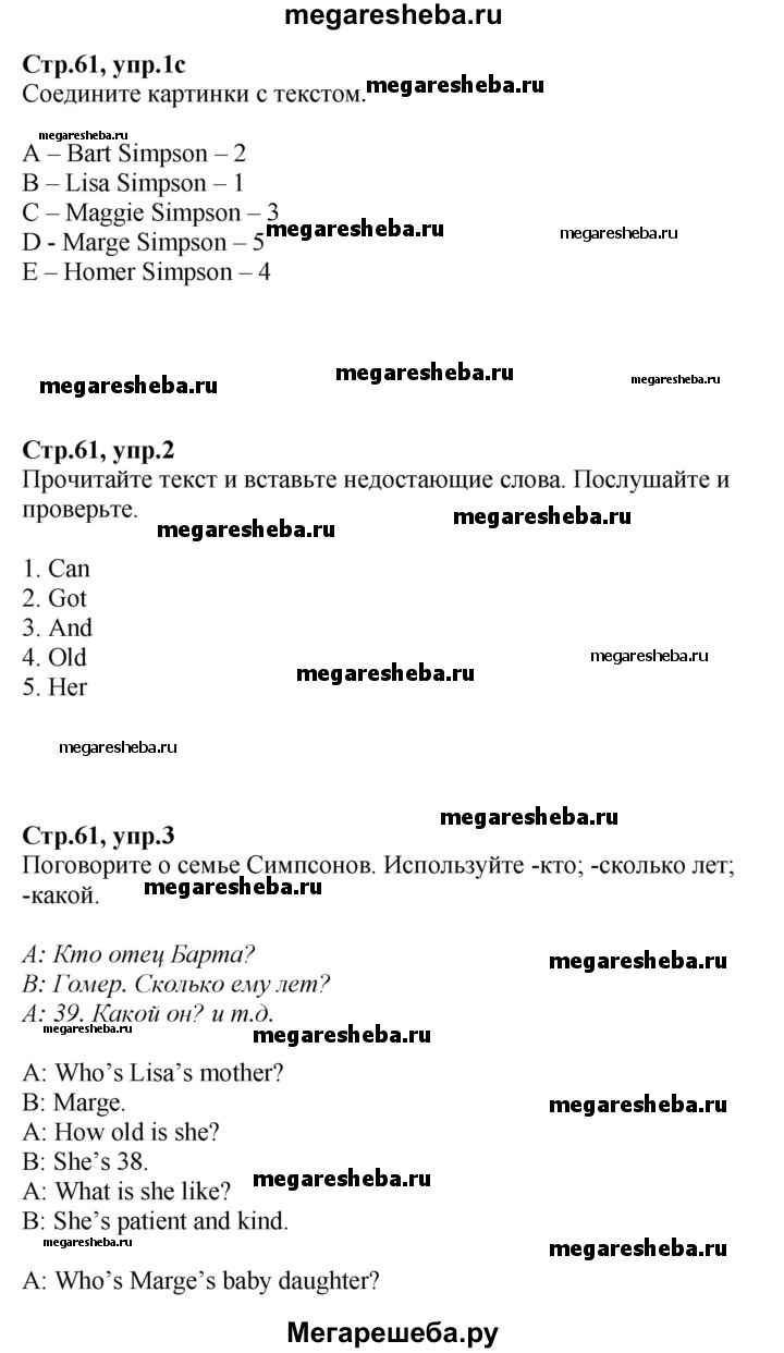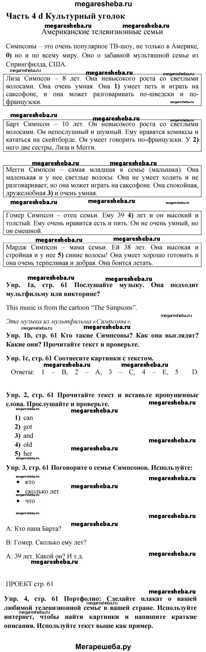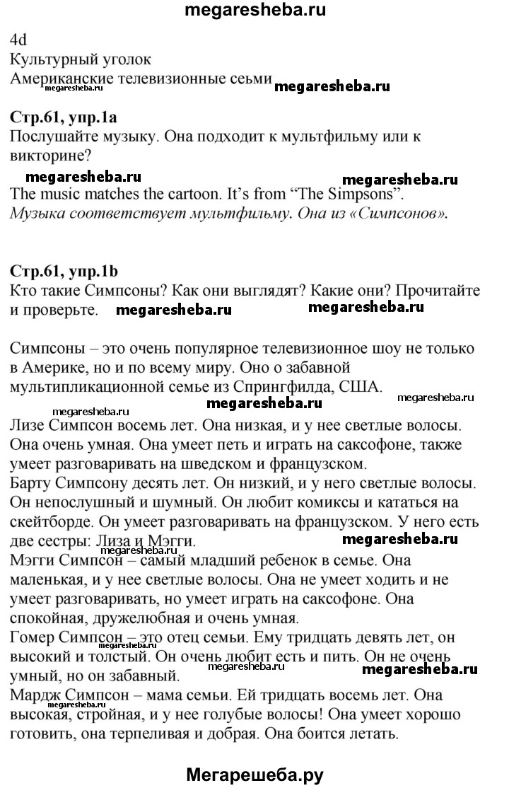 Подробный решебник (ГДЗ) по Английскому языку за 5 (пятый) класс Spotlight, student's book - готовый ответ страница - 61. Авторы учебника: Ваулина, Дули, Подоляко, Эванс. Издательство: Просвещение 2015-2025.