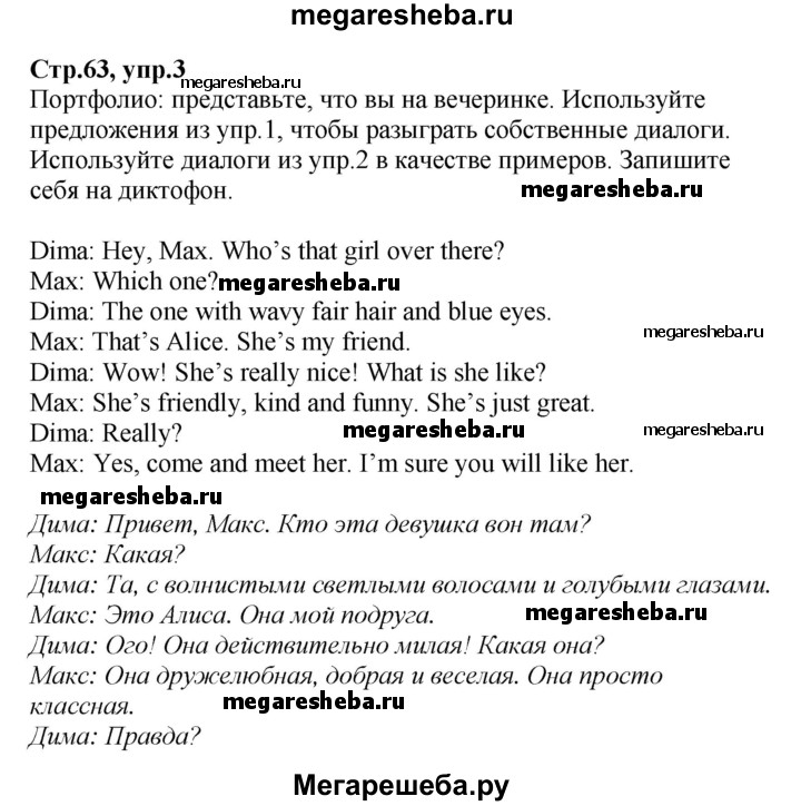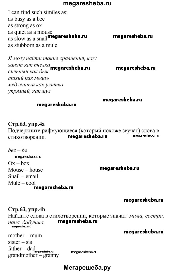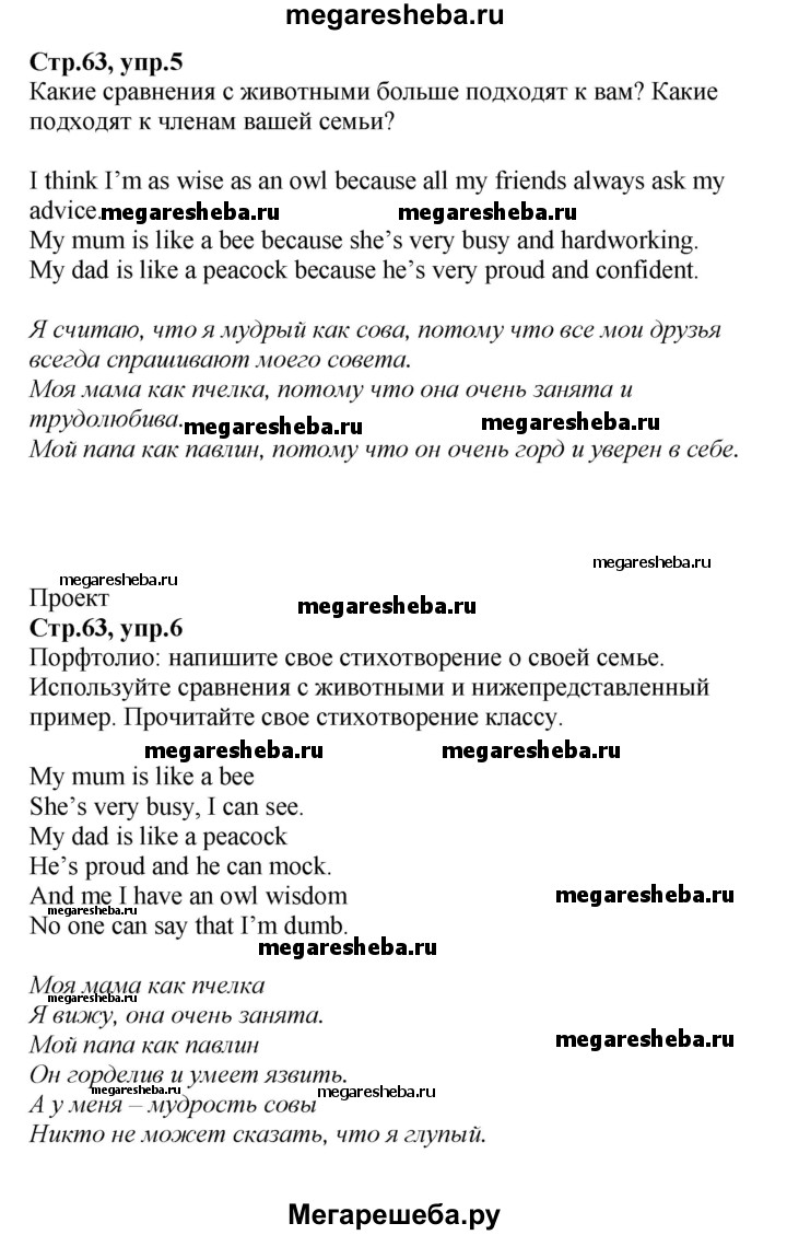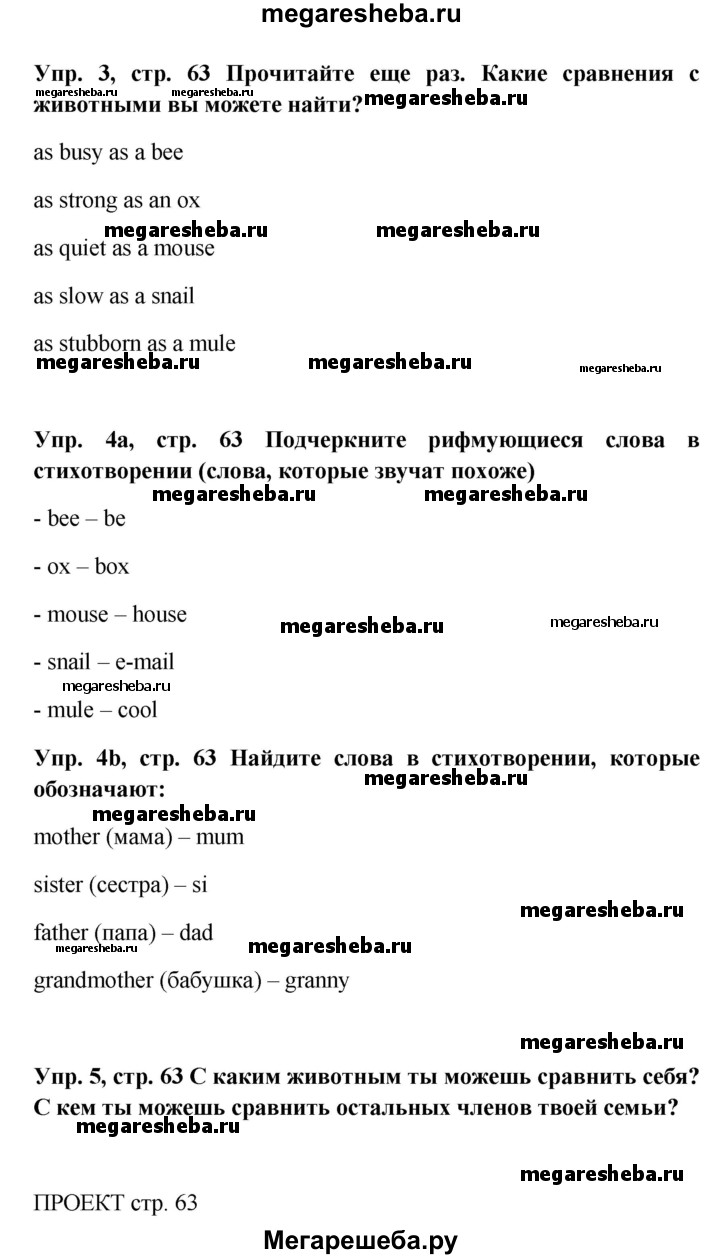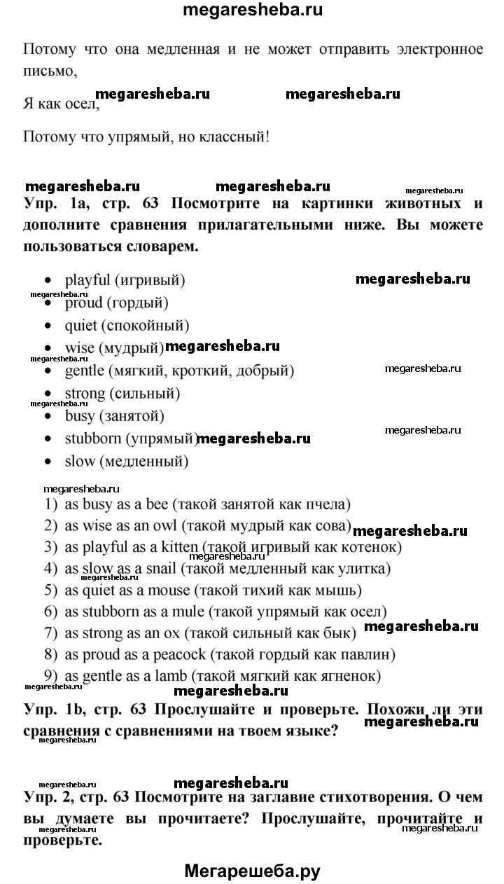 Подробный решебник (ГДЗ) по Английскому языку за 5 (пятый) класс Spotlight, student's book - готовый ответ страница - 63. Авторы учебника: Ваулина, Дули, Подоляко, Эванс. Издательство: Просвещение 2015-2025.