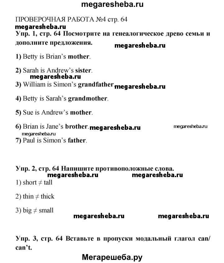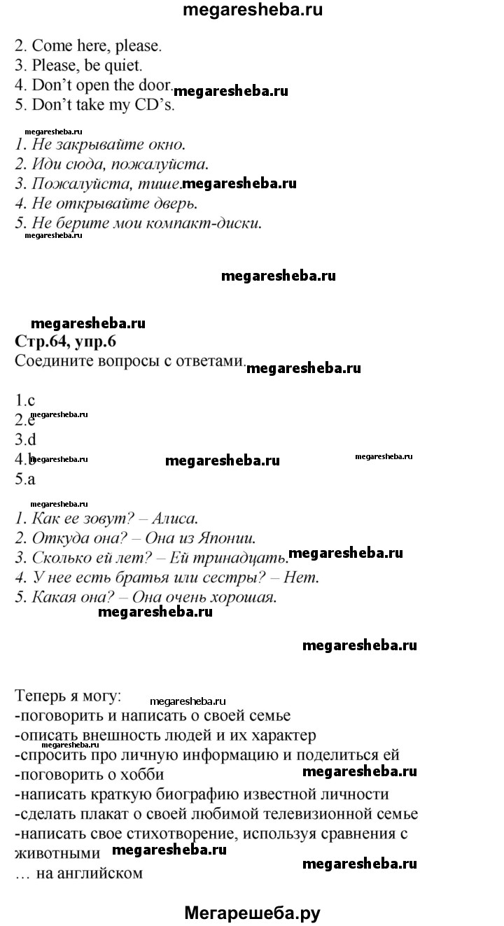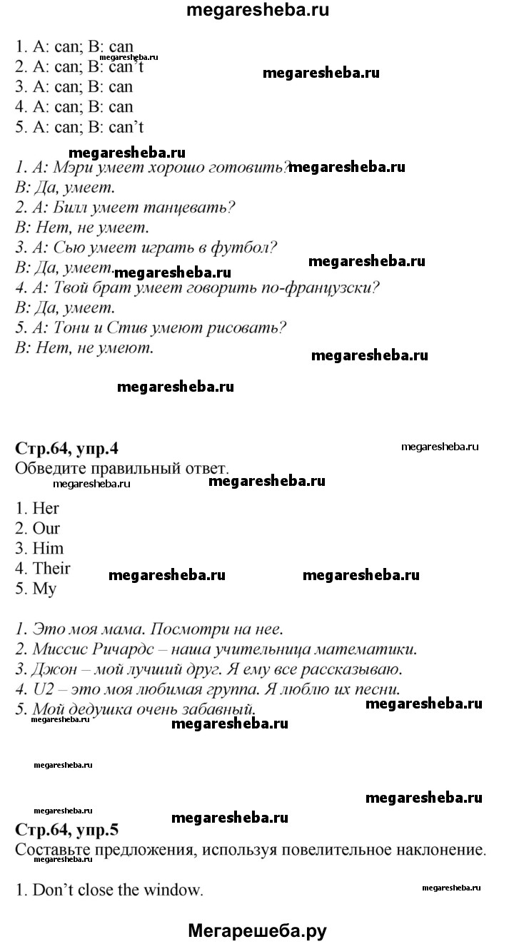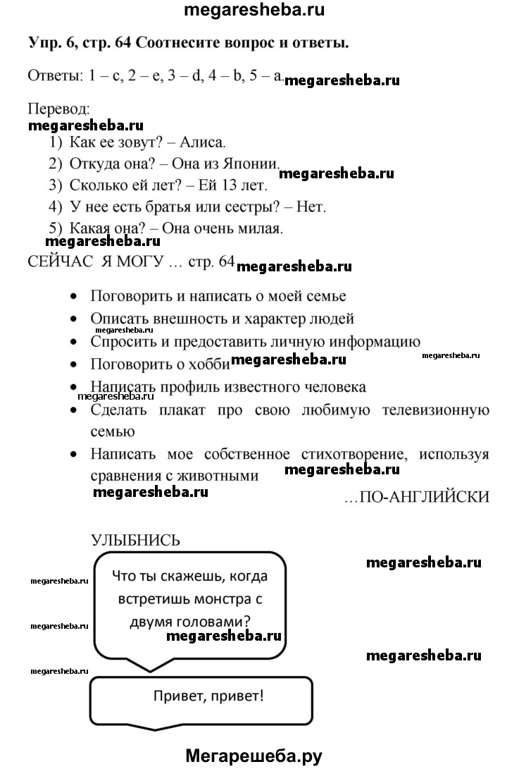 Подробный решебник (ГДЗ) по Английскому языку за 5 (пятый) класс Spotlight, student's book - готовый ответ страница - 64. Авторы учебника: Ваулина, Дули, Подоляко, Эванс. Издательство: Просвещение 2015-2025.