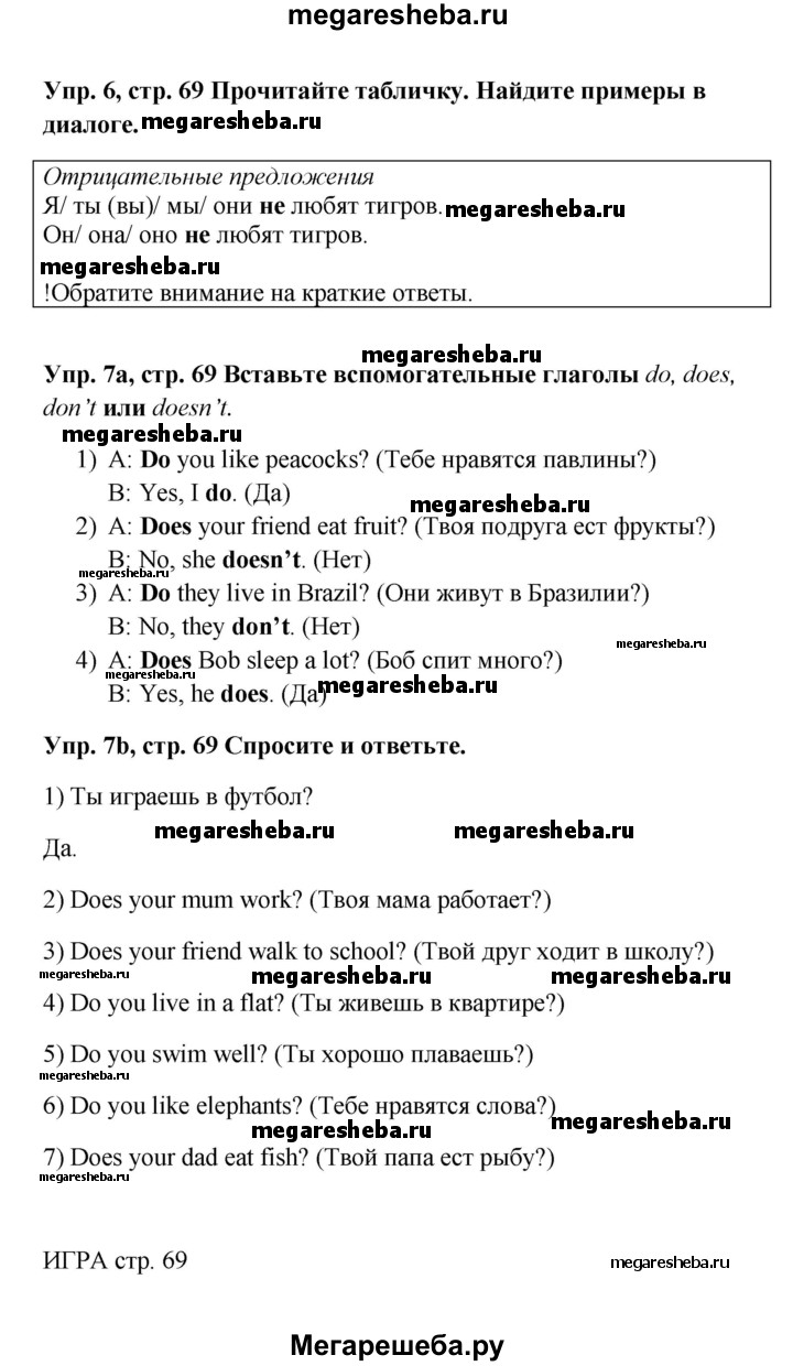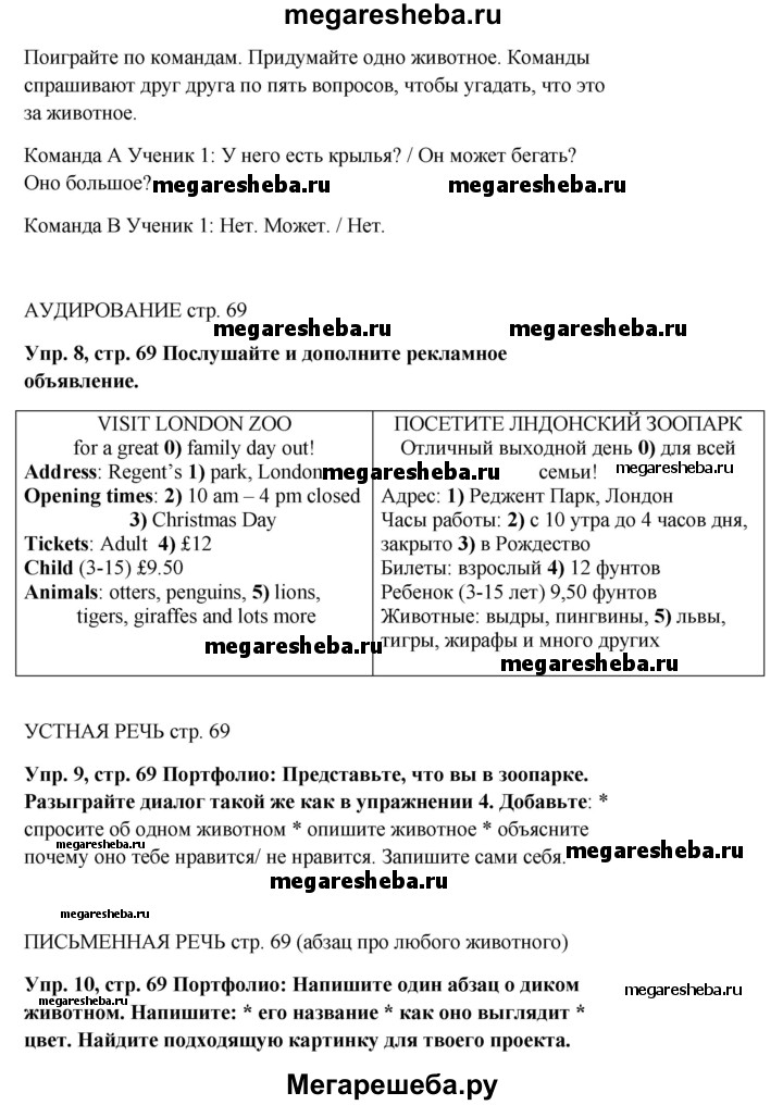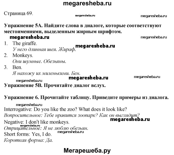 Подробный решебник (ГДЗ) по Английскому языку за 5 (пятый) класс Spotlight, student's book - готовый ответ страница - 69. Авторы учебника: Ваулина, Дули, Подоляко, Эванс. Издательство: Просвещение 2015-2025.