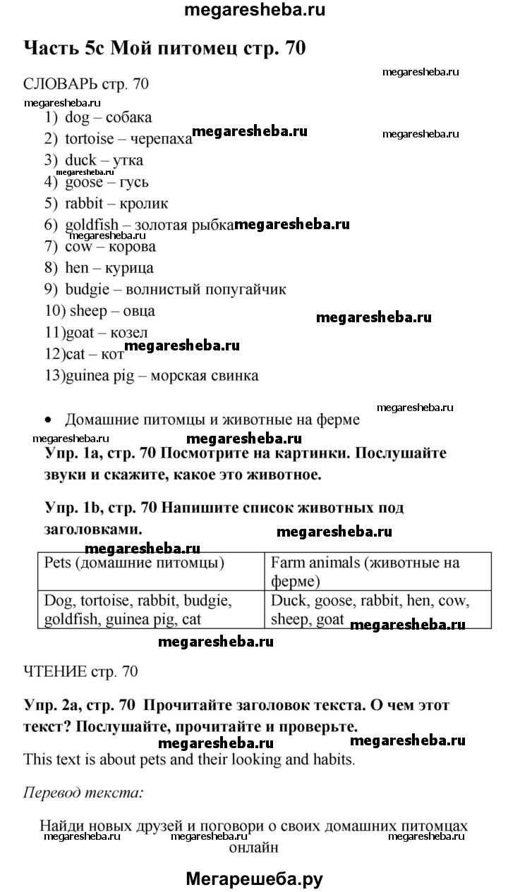 ГДЗ по английскому языку 5 класс Ваулина Spotlight, student's book страница - 70