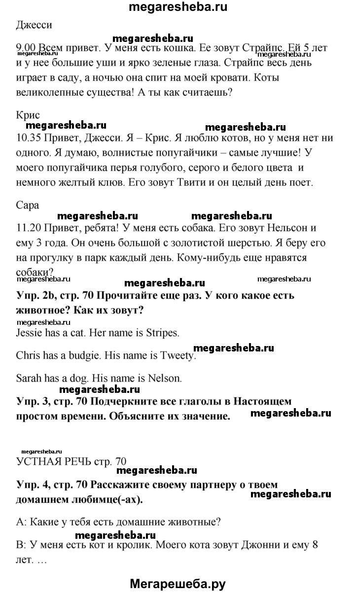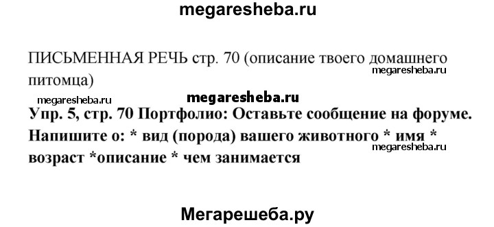 Подробный решебник (ГДЗ) по Английскому языку за 5 (пятый) класс Spotlight, student's book - готовый ответ страница - 70. Авторы учебника: Ваулина, Дули, Подоляко, Эванс. Издательство: Просвещение 2015-2025.