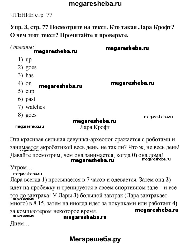 Подробный решебник (ГДЗ) по Английскому языку за 5 (пятый) класс Spotlight, student's book - готовый ответ страница - 77. Авторы учебника: Ваулина, Дули, Подоляко, Эванс. Издательство: Просвещение 2015-2025.