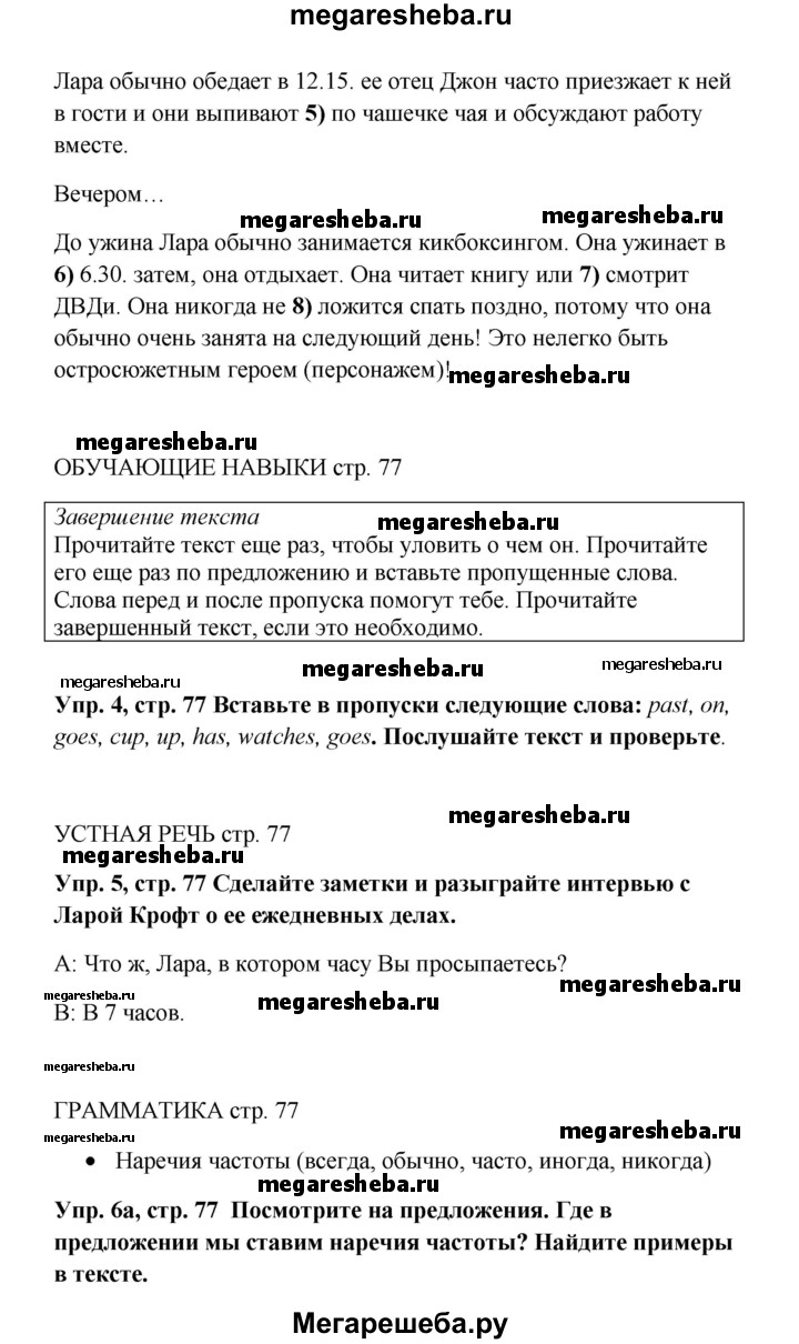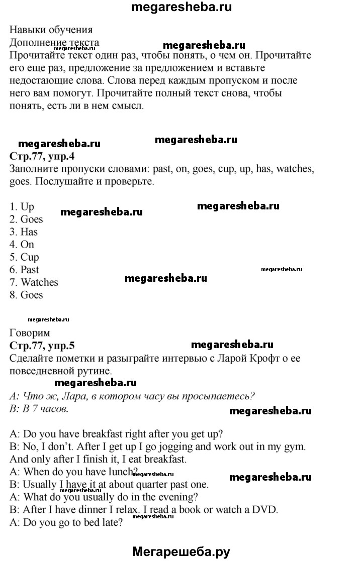 ГДЗ по английскому языку 5 класс Ваулина Spotlight, student's book страница - 77
