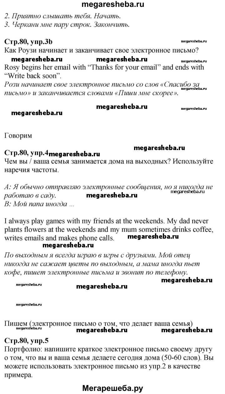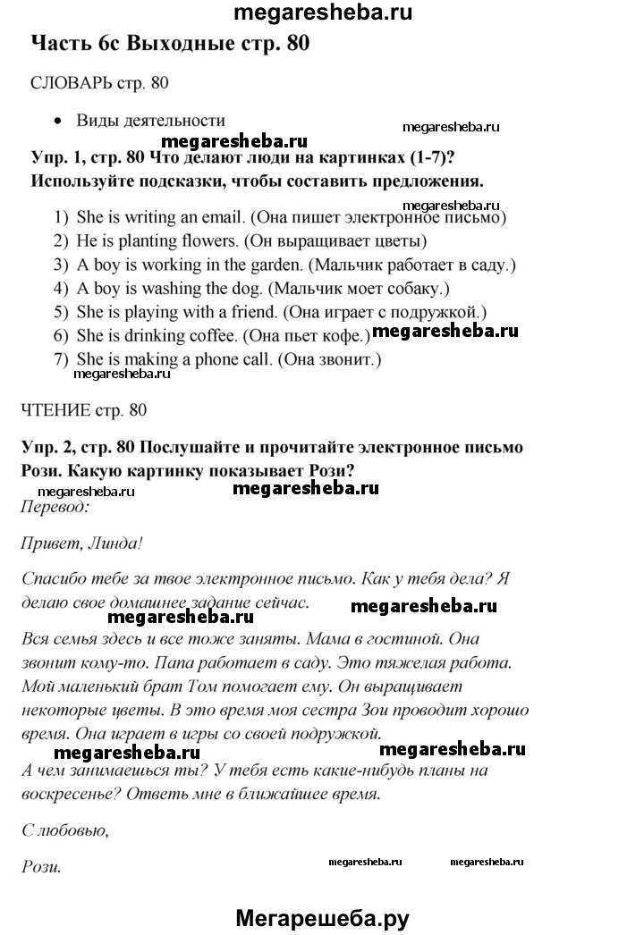 Подробный решебник (ГДЗ) по Английскому языку за 5 (пятый) класс Spotlight, student's book - готовый ответ страница - 80. Авторы учебника: Ваулина, Дули, Подоляко, Эванс. Издательство: Просвещение 2015-2025.