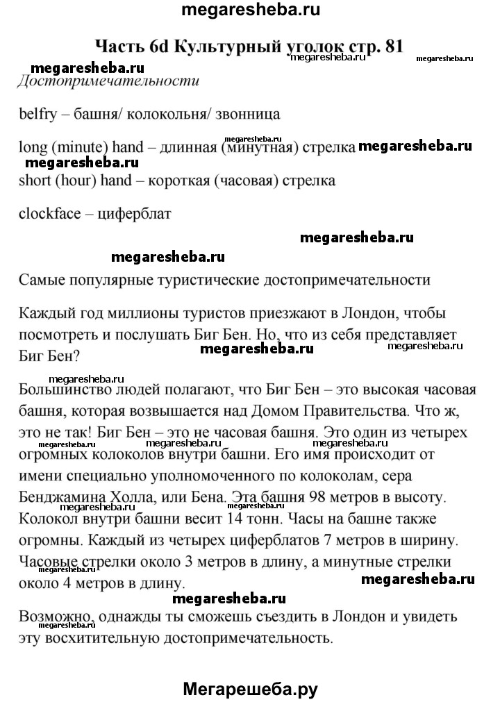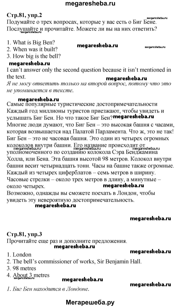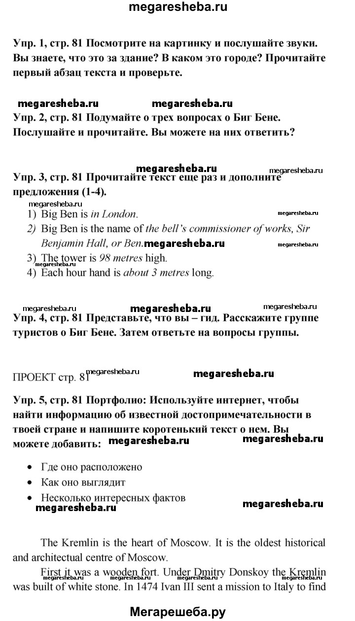 Подробный решебник (ГДЗ) по Английскому языку за 5 (пятый) класс Spotlight, student's book - готовый ответ страница - 81. Авторы учебника: Ваулина, Дули, Подоляко, Эванс. Издательство: Просвещение 2015-2025.