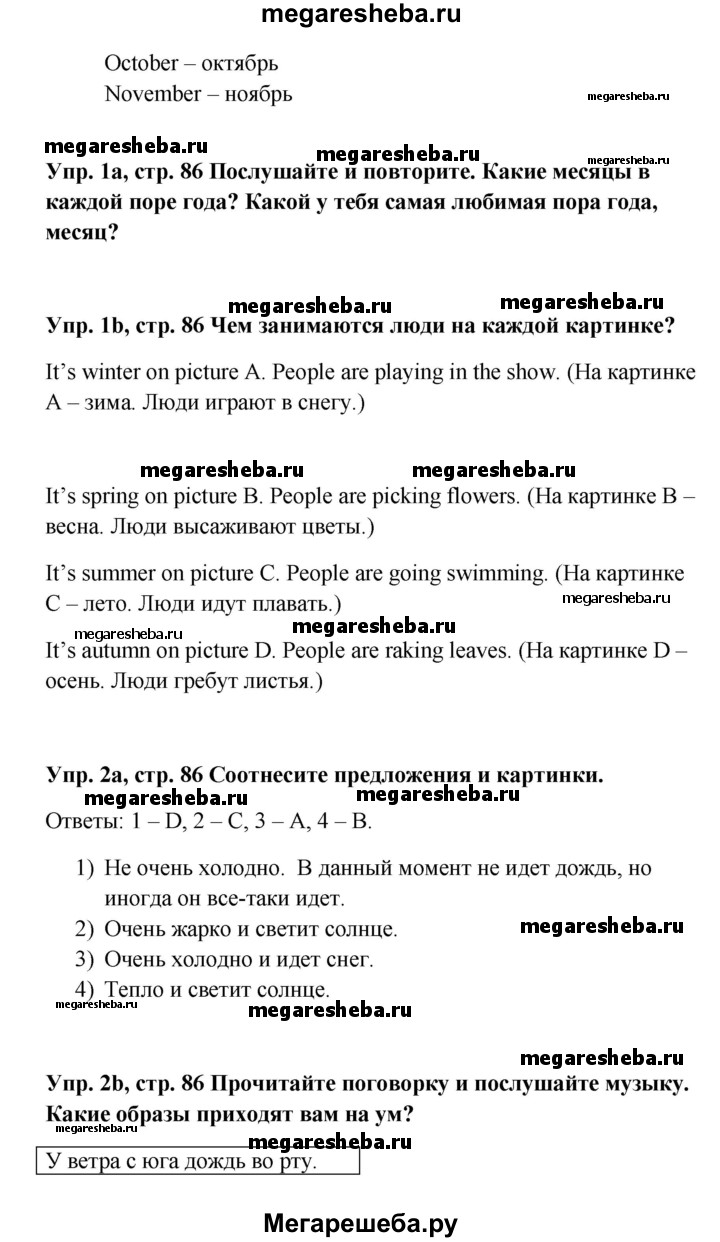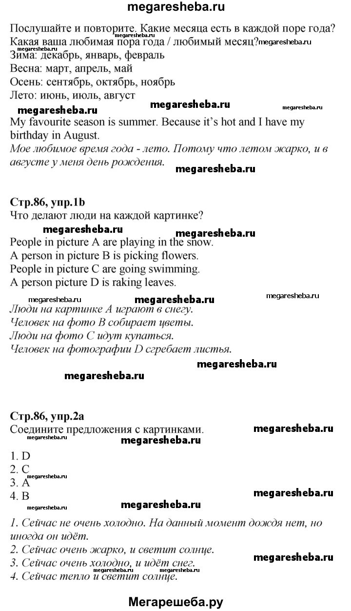 Подробный решебник (ГДЗ) по Английскому языку за 5 (пятый) класс Spotlight, student's book - готовый ответ страница - 86. Авторы учебника: Ваулина, Дули, Подоляко, Эванс. Издательство: Просвещение 2015-2025.