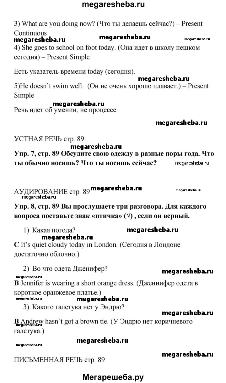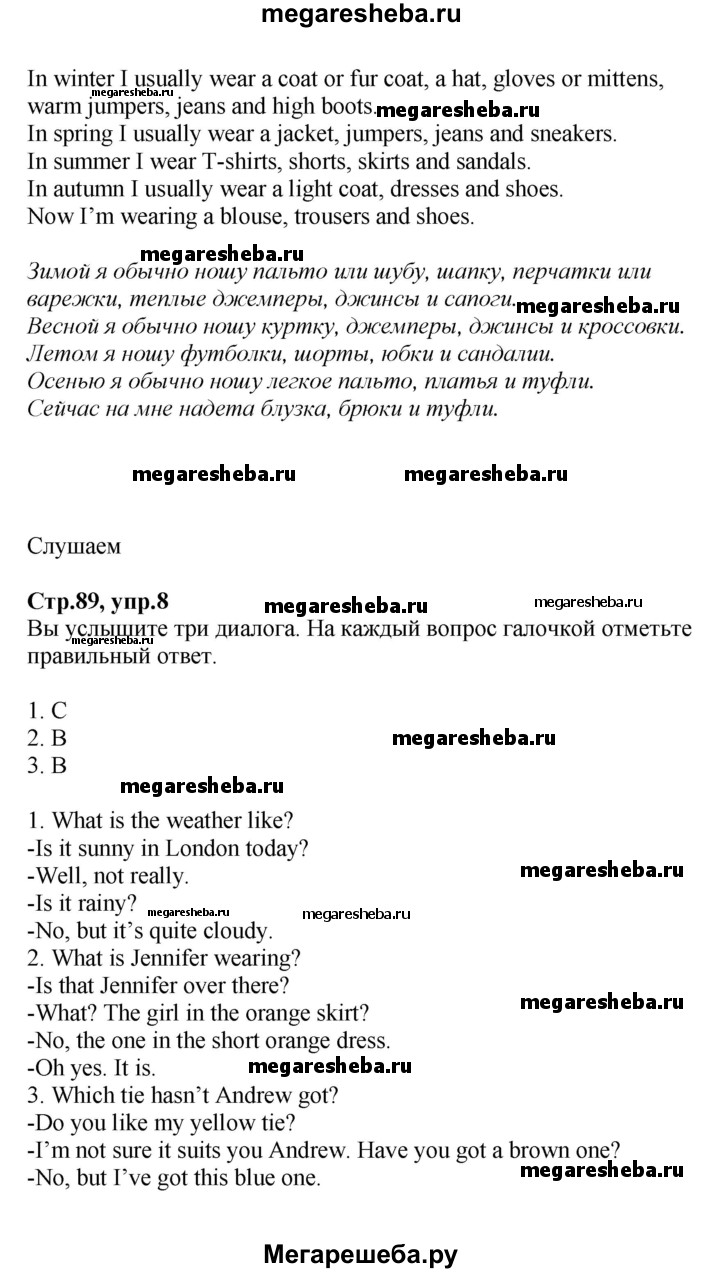 Подробный решебник (ГДЗ) по Английскому языку за 5 (пятый) класс Spotlight, student's book - готовый ответ страница - 89. Авторы учебника: Ваулина, Дули, Подоляко, Эванс. Издательство: Просвещение 2015-2025.