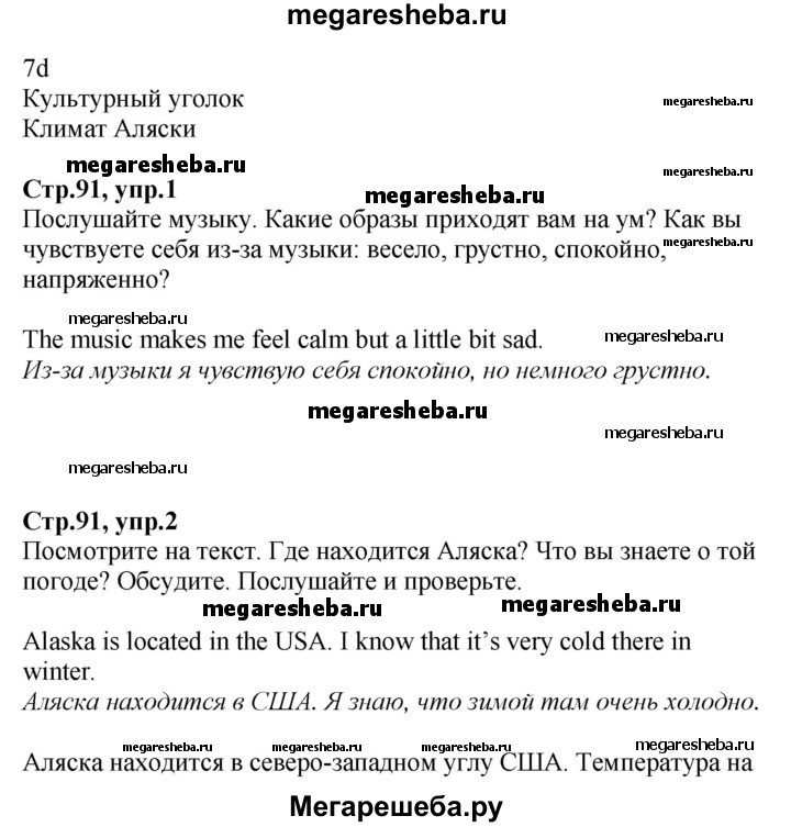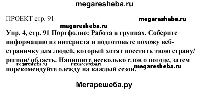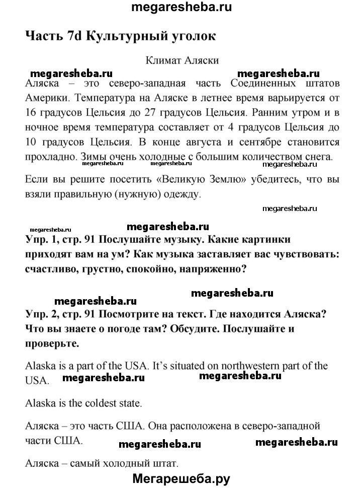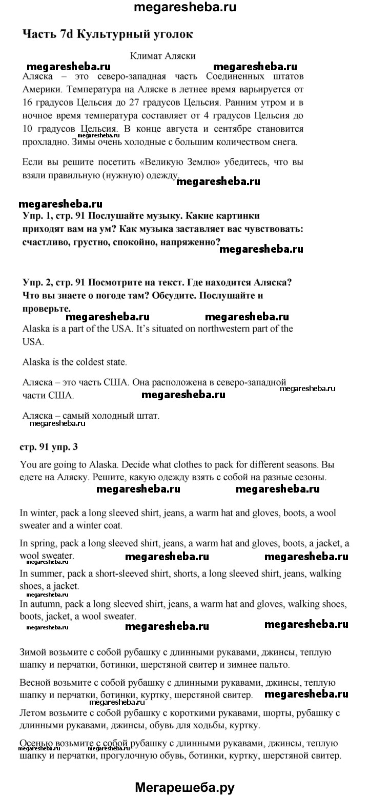 Подробный решебник (ГДЗ) по Английскому языку за 5 (пятый) класс Spotlight, student's book - готовый ответ страница - 91. Авторы учебника: Ваулина, Дули, Подоляко, Эванс. Издательство: Просвещение 2015-2025.