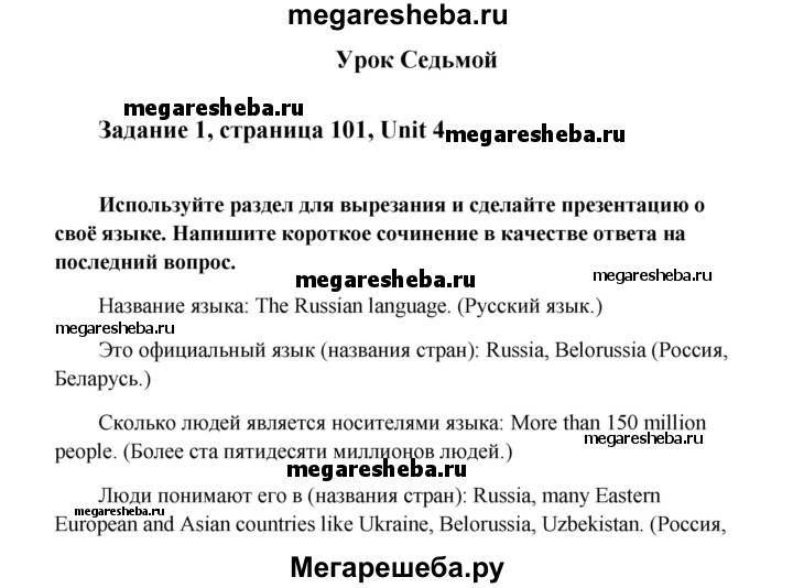 Подробный решебник (ГДЗ) по Английскому языку за 8 (восьмой) класс - готовый ответ решение к разделу: страница - 101. Авторы учебника: Кауфман, Кауфман. Издательство: Титул .