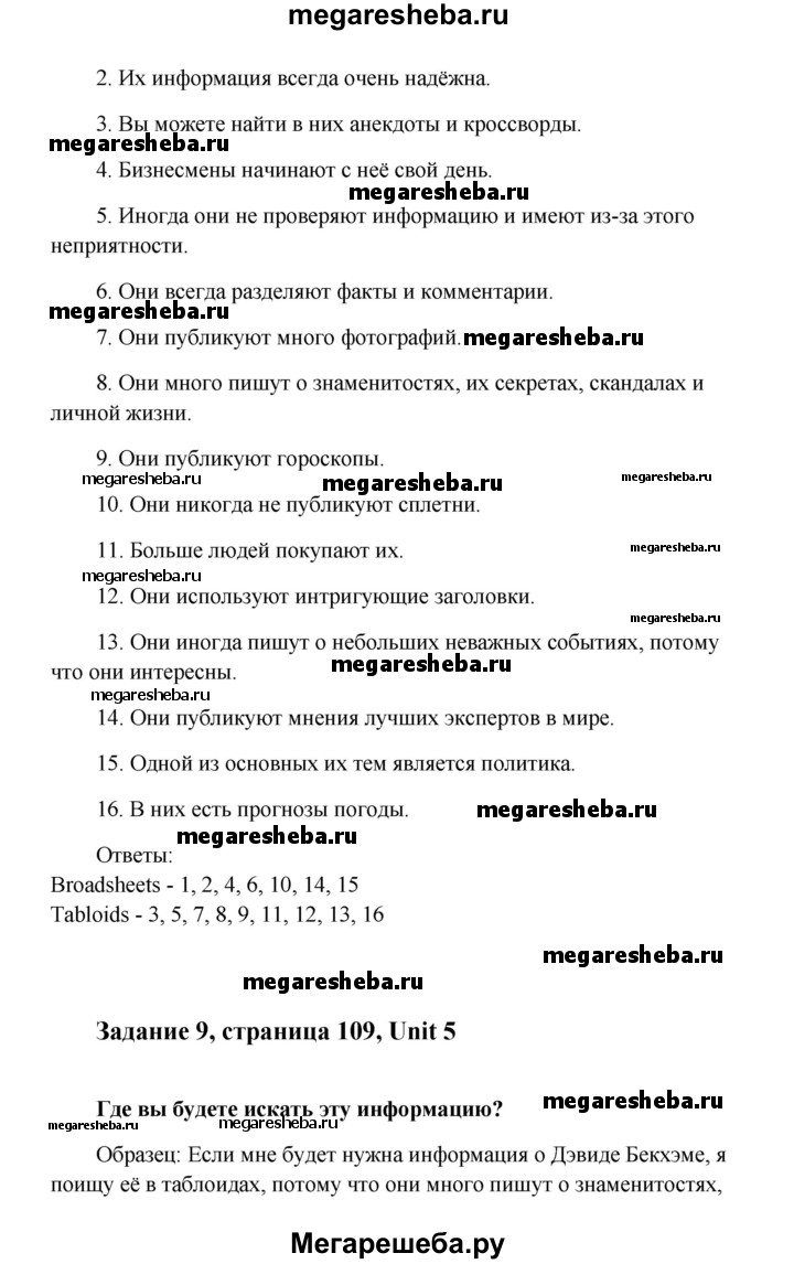 ГДЗ по английскому языку 8 класс Кауфман решение к разделу: страница - 109