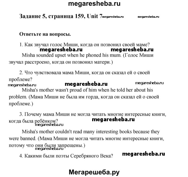 Подробный решебник (ГДЗ) по Английскому языку за 8 (восьмой) класс - готовый ответ решение к разделу: страница - 159. Авторы учебника: Кауфман, Кауфман. Издательство: Титул .