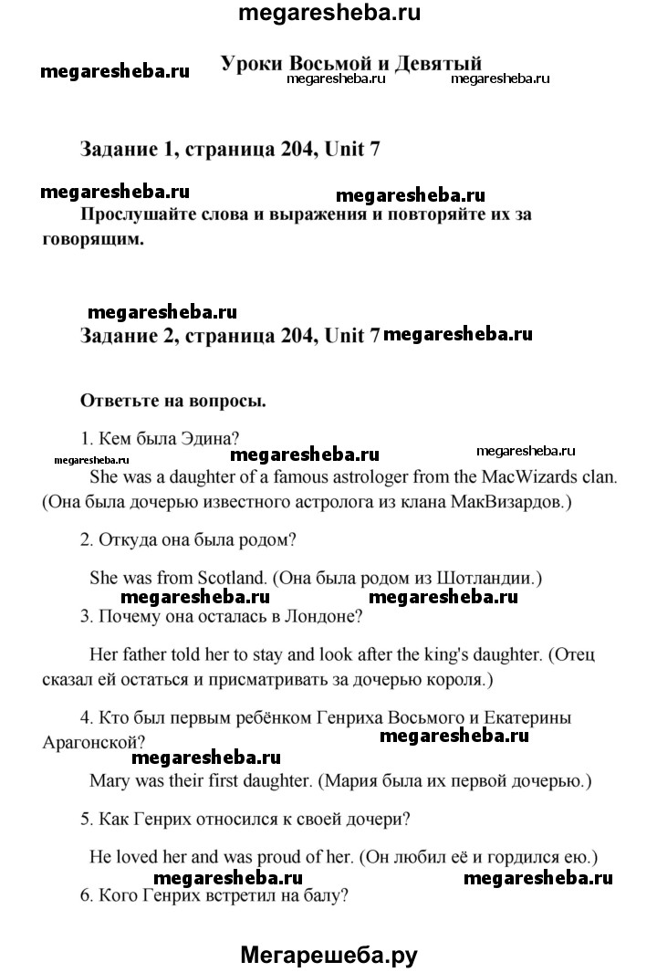 Подробный решебник (ГДЗ) по Английскому языку за 8 (восьмой) класс - готовый ответ решение к разделу: страница - 204. Авторы учебника: Кауфман, Кауфман. Издательство: Титул .
