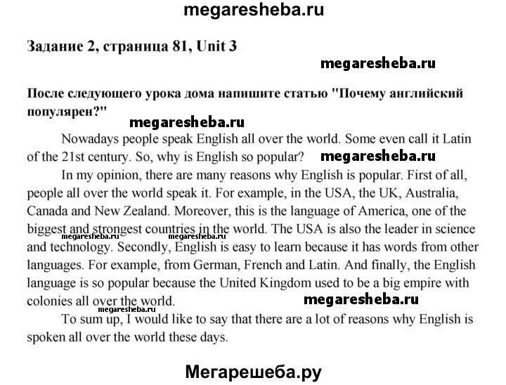 Подробный решебник (ГДЗ) по Английскому языку за 8 (восьмой) класс - готовый ответ решение к разделу: страница - 81. Авторы учебника: Кауфман, Кауфман. Издательство: Титул .
