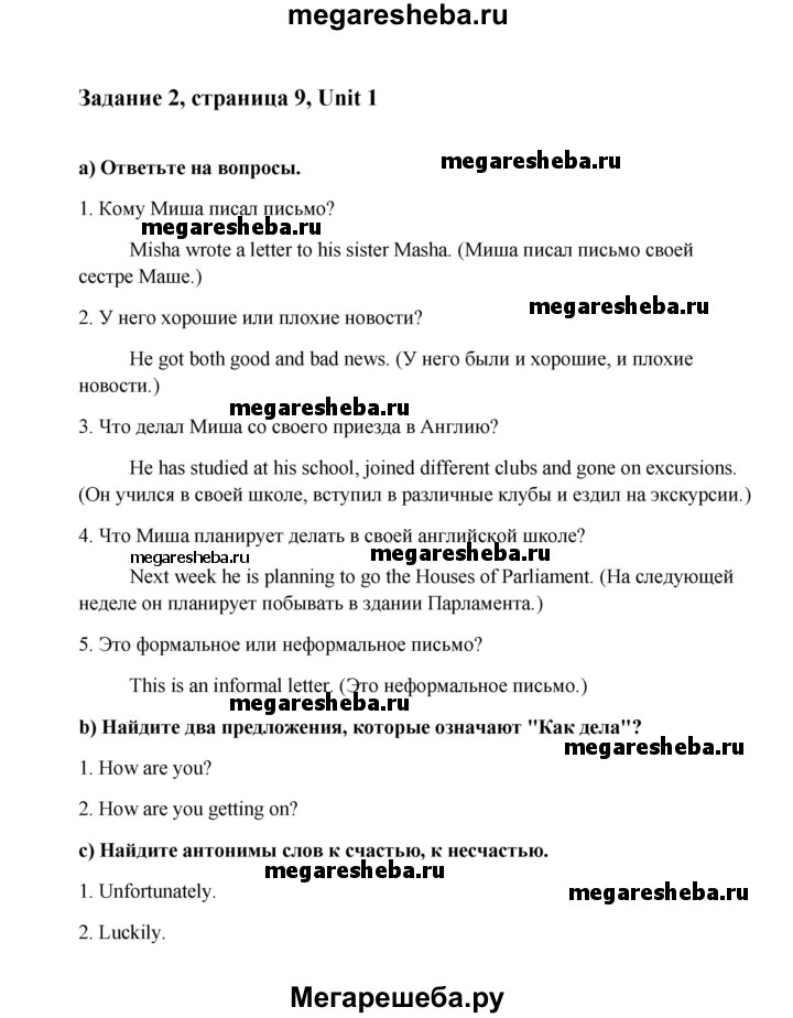 Подробный решебник (ГДЗ) по Английскому языку за 8 (восьмой) класс - готовый ответ решение к разделу: страница - 9. Авторы учебника: Кауфман, Кауфман. Издательство: Титул .