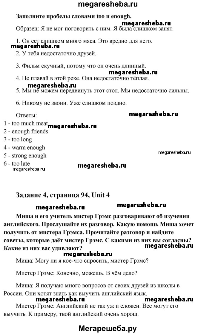 Подробный решебник (ГДЗ) по Английскому языку за 8 (восьмой) класс - готовый ответ решение к разделу: страница - 94. Авторы учебника: Кауфман, Кауфман. Издательство: Титул .
