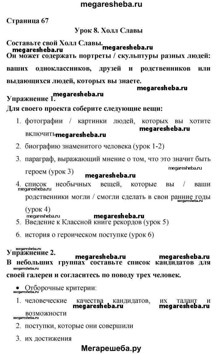 Подробный решебник (ГДЗ) по Английскому языку за 8 (восьмой) класс New Millennium - готовый ответ решение к разделу: страницы - 67. Авторы учебника: Гроза, Дворецкая. Издательство: Титул 2015.