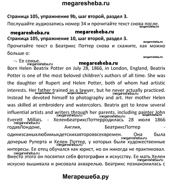 ГДЗ по английскому языку 8 класс Афанасьева новый курс (4-ый год обучения) решение к разделу: страница - 105